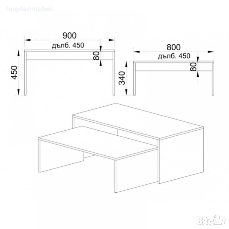 Материал: ЛПДЧ с дебелина 16мм, кант 0,45мм/ МДФ с дебелина 16мм, кант 1мм