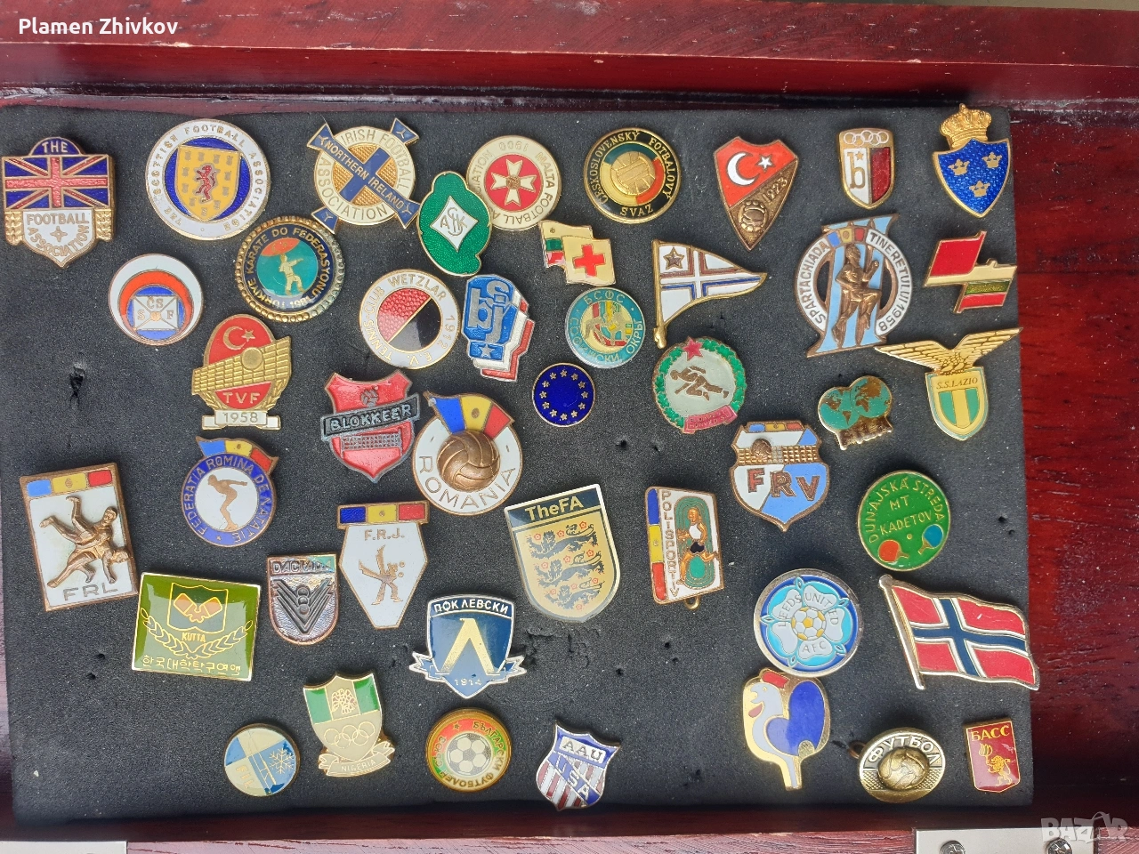 Колекция от значки в мн .хубава дървена кутия → Обява 53560064