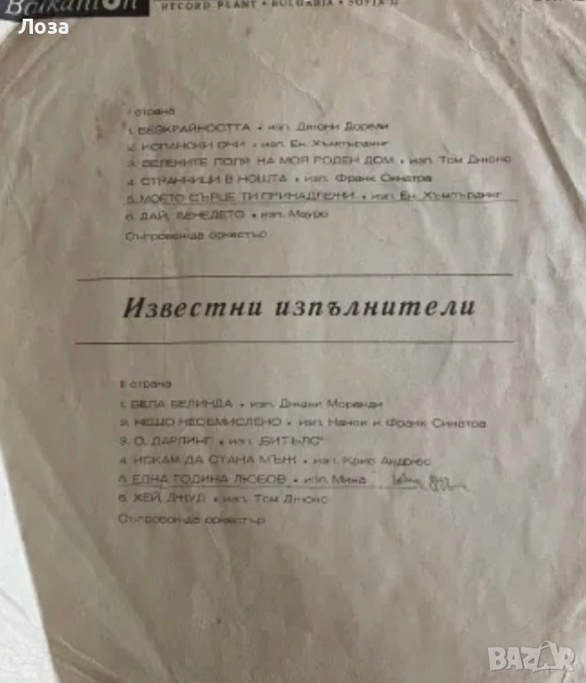 Грамофонна плоча Балкантон → Обява 53560174