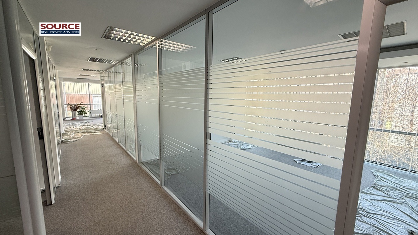 2. Разпределение: 2 големи и светли Open space помещения, 8 отделни работни помещения преградени със стъклени и гипсокартонени преградни стени, оборудван кухненски бокс, сървърно помещение, 3 wc, тераса. Офисът може да бъде изцяло с Open space разпределение или допълнително преграден според изискванията на Наемателя.