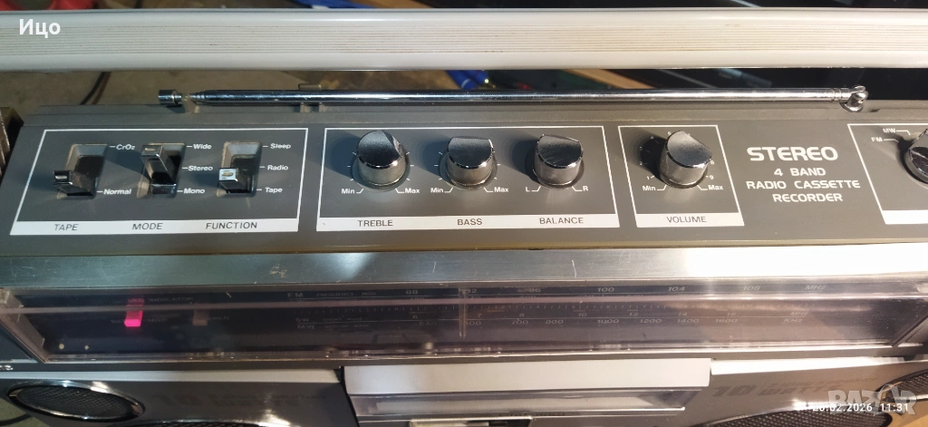 Данни от снимките.Отличен външен вид,голям и тежък.Копче баланс е блокирало.Работи на касета,радиото припуква.Внос от Германия,не е ремонтиран.При интерес пишете.