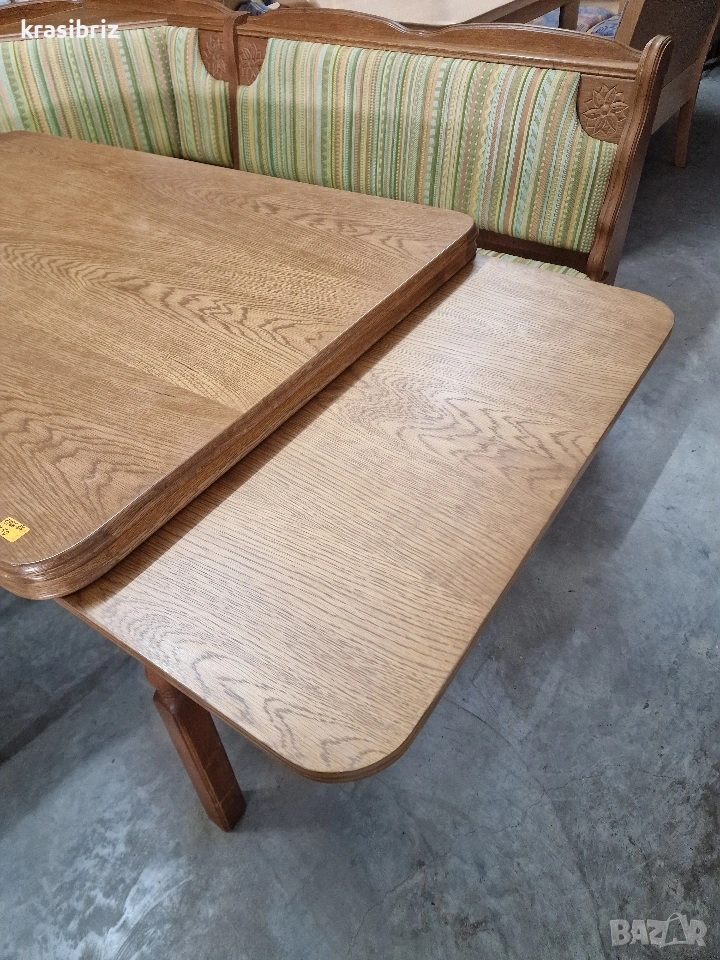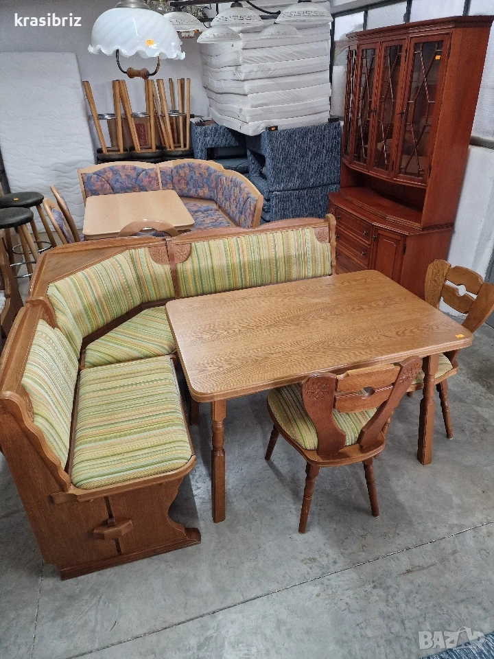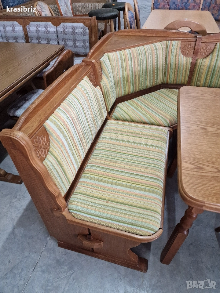 К-т Масивен Кухненски Ъгъл с Разтегателна Трапезна Маса с 2 броя Стола-внос от Германия! Размери на Кухн.ъгъл:Д/180см...Ш/145см...В/88см... Размер на Масата:Д/120см...Ш/80см...В/75см... Разпъната:200см...(2×40см) Всеки месец ново зареждане в склада на КРАСИ БРИЗ! Работим с Еконт! 0888 24 00 33
