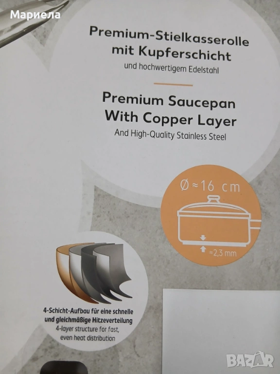 Висококачествена 4-слойна конструкция за бързо и равномерно разпределение на топлината .