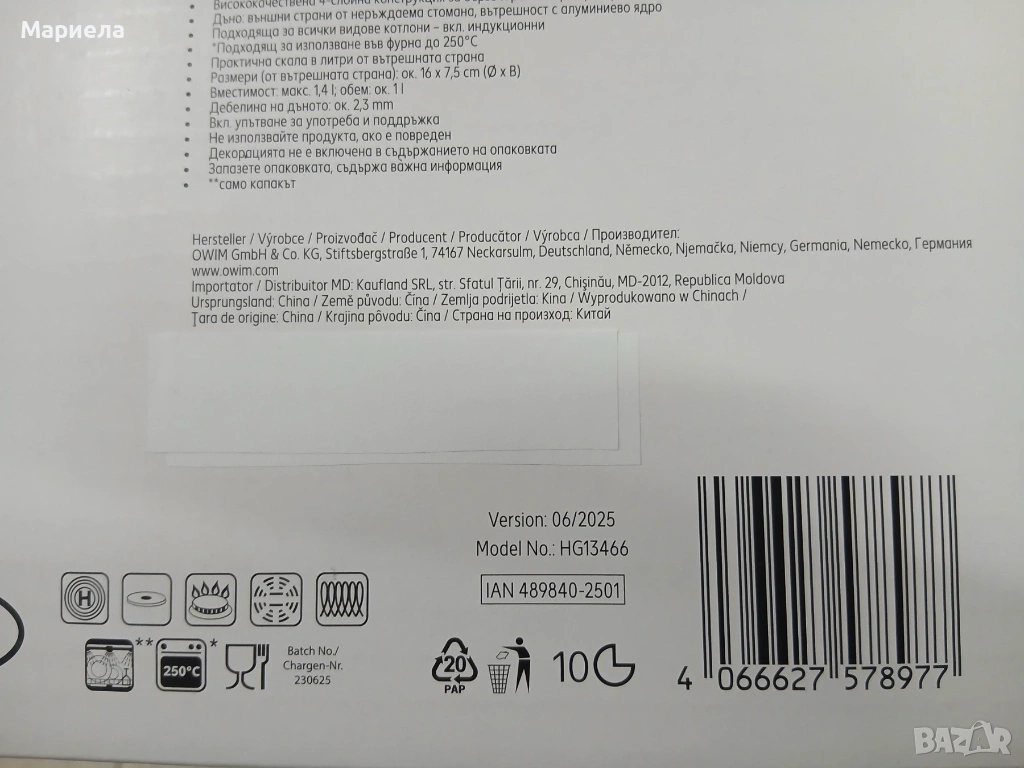 Подходящ е и за готвене във фурна до 250°С .