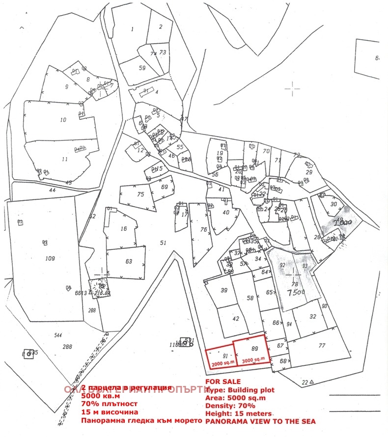 Има разработен ПУП и повече данни ще бъдат изпратени на всички потенциални клиенти които назоват и посочат реалистична оферта и цена за имота или процентно обезщетение. Парцелът е с площ от точно 5000кв.м.