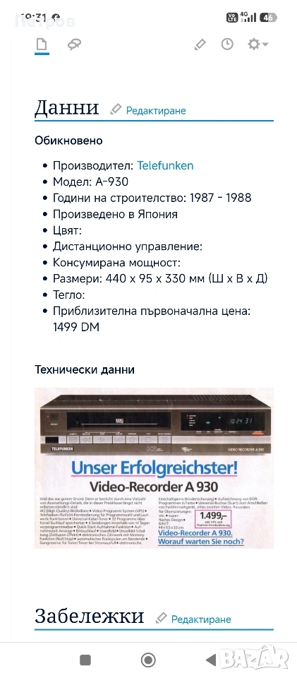 Видео Рекордер"Telefunken" A 930 P → Обява 53560723