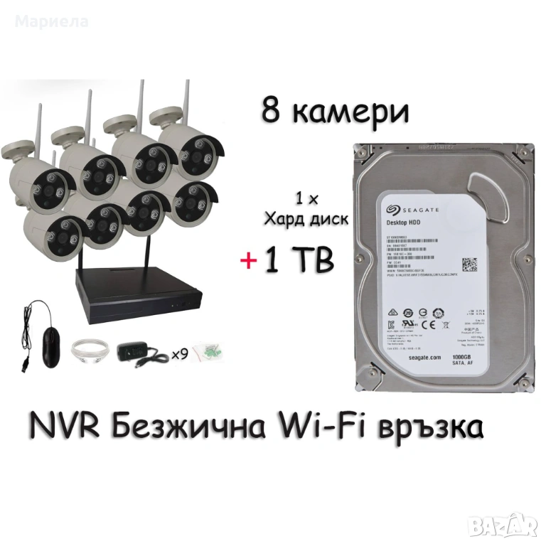 5G ВИДЕОНАБЛЮДЕНИЕ С 8 КАМЕРИ И ХАРД ДИСК 1TB Безжични