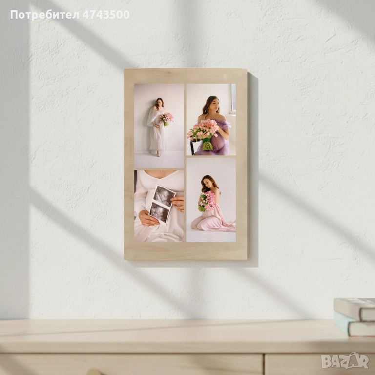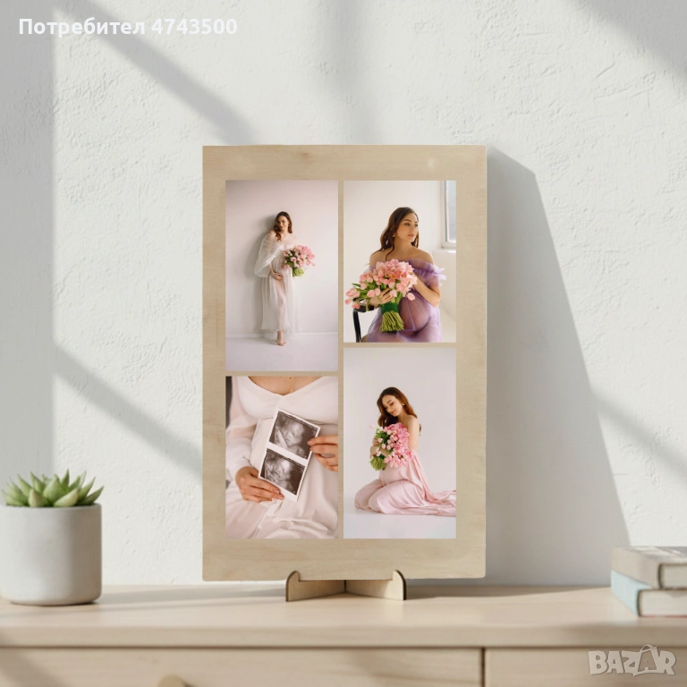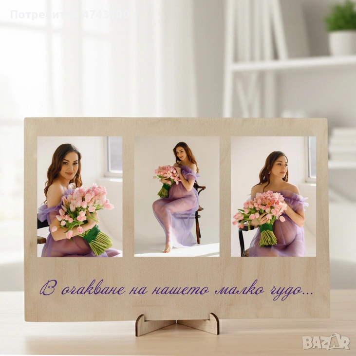 Оригинален подарък за 8 март – масивен дървен фото панел с ваши снимки и лично послание.