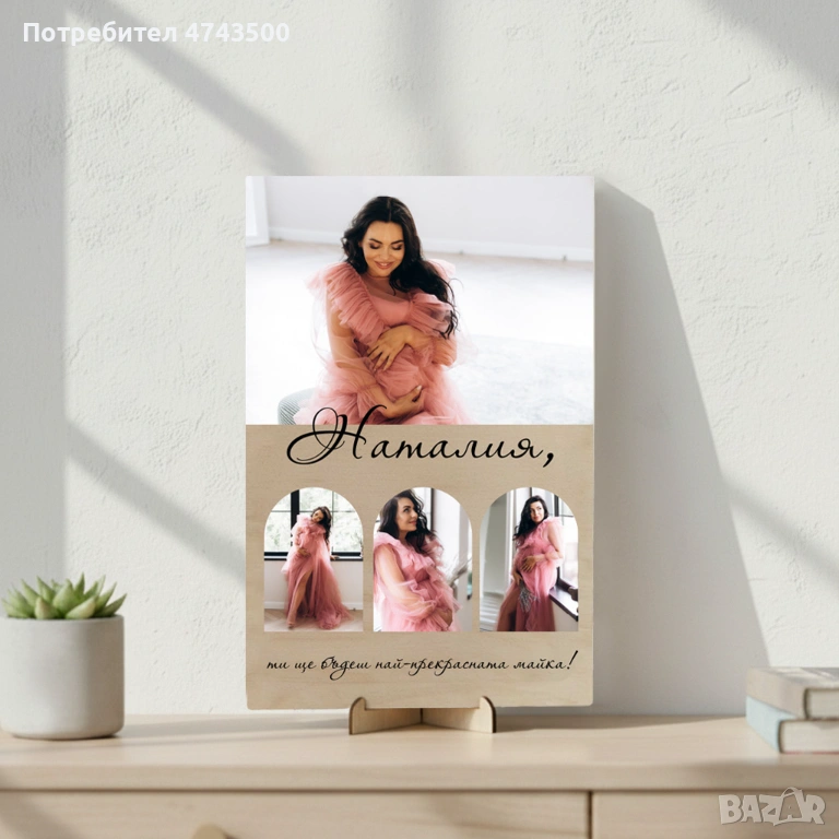 Подарък за 8 март – персонализиран дървен фото панел със снимка → Обява 53560821