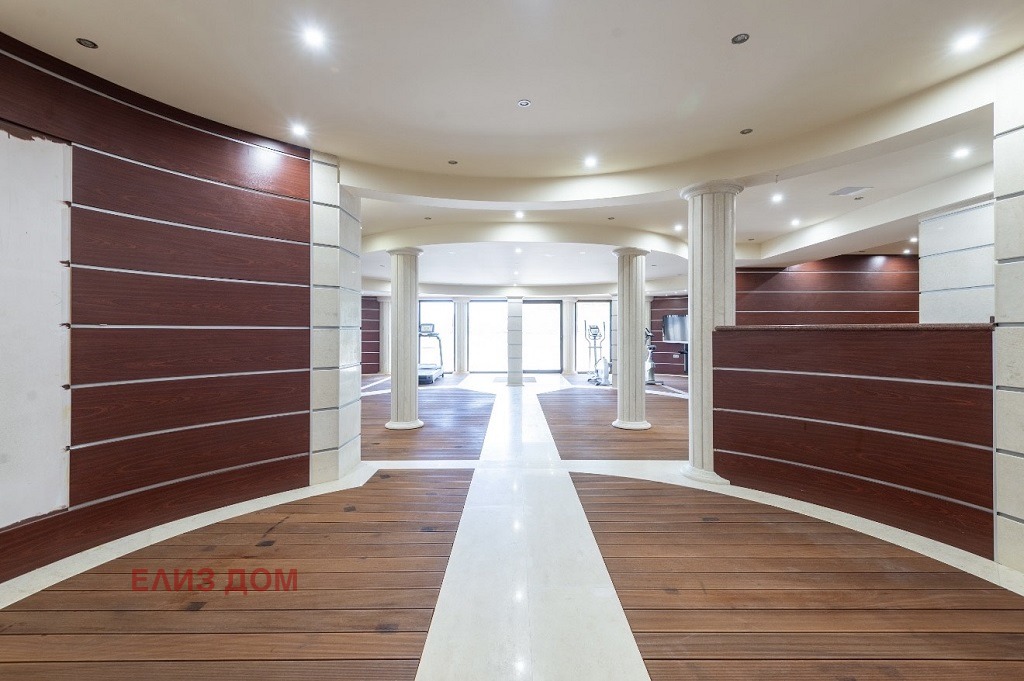 Ет.1 (199кв.м): голямо помещение, което е било използвано като фитнес зала, кухненски бокс, сауна, две сервизни помещения, бойлерно помещение;