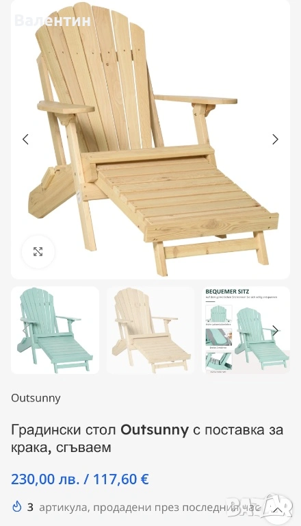 Сгъваем градински стол → Обява 53561084