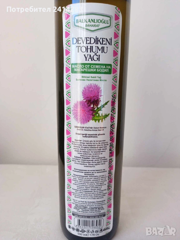 Натурално студено пресовано масло от Магарешки бодил (бял трън) 500 ml. → Обява 53561095