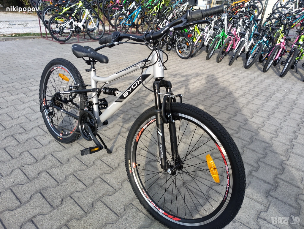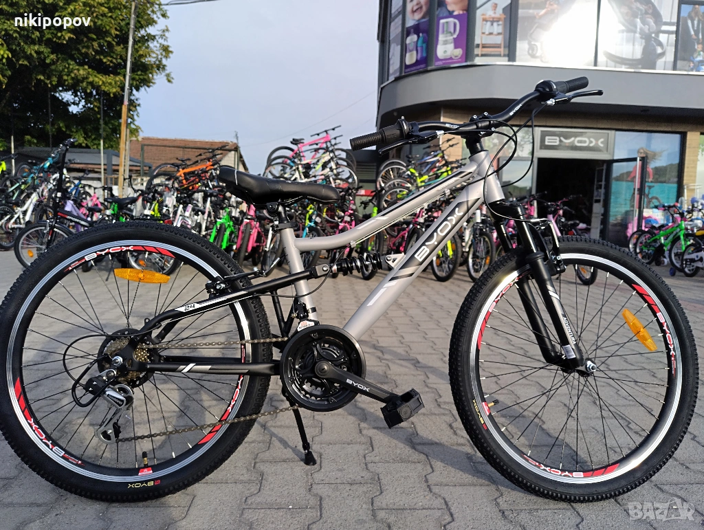 *Byox Bikes 24" Adventura е надежден партньор за млади колоездачи, които търсят стабилност, комфорт и контрол при каране. Със здрава стоманена рамка с амортисьор, 21 скорости Shimano и стоманена амортисьорна вилка, този модел предлага сигурност и удоволствие както при разходки в града, така и по разнообразни маршрути и по-неравни терени. Този модел е отличен избор за дете можещо да кара колело, между 8 и 12-годишна възраст и височина от 140 до 160см.