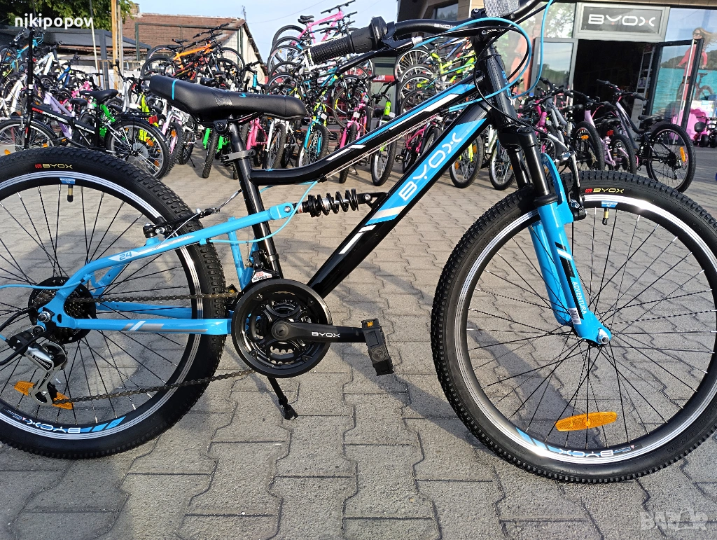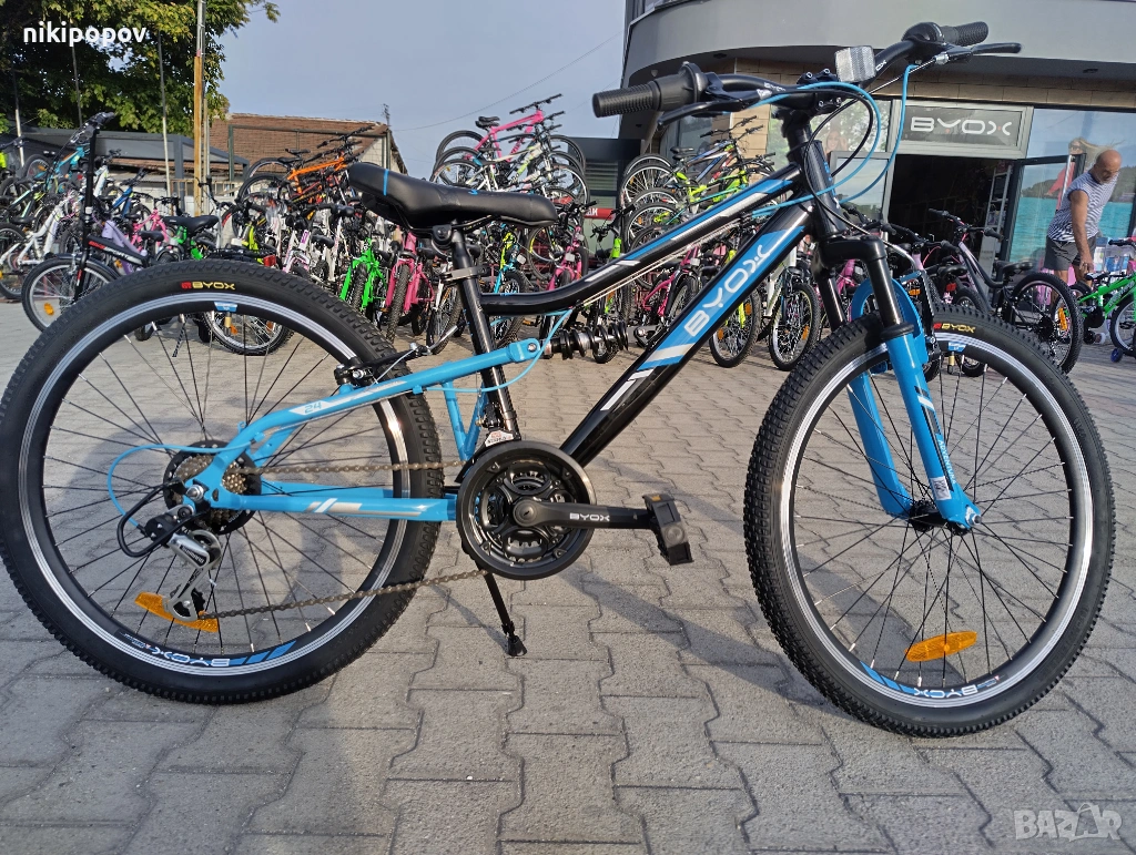 *Byox Bikes 24" Adventura е надежден партньор за млади колоездачи, които търсят стабилност, комфорт и контрол при каране. Със здрава стоманена рамка с амортисьор, 21 скорости Shimano и стоманена амортисьорна вилка, този модел предлага сигурност и удоволствие както при разходки в града, така и по разнообразни маршрути и по-неравни терени. Този модел е отличен избор за дете можещо да кара колело, между 8 и 12-годишна възраст и височина от 140 до 160см.