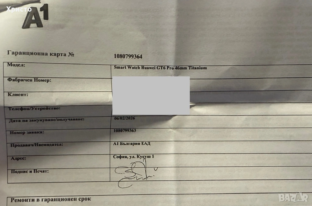 Часовникът е в перфектно състояние, неразличим от нов. Работи абсолютно отлично, без никакви забележки. Устройството може спокойно да се каже, че е ново – използвано е минимално. Закупен е на 6 февруари 2026 година и има 24 месеца гаранция към А1. Отличен избор за човек, който търси нова визия и сигурна покупка на по-добра цена. Без бартери!!!