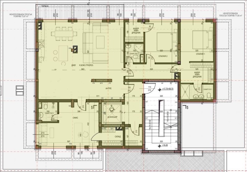 - Родителска спалня с прилежащи дрешник и баня с излаз на тераса;