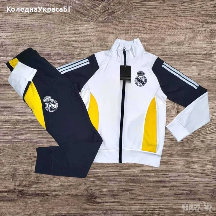 Анцуг Реал Мадрид Бял Анцуг с жълто и черна долница Модел Мбапе 2025 → Обява 53561404