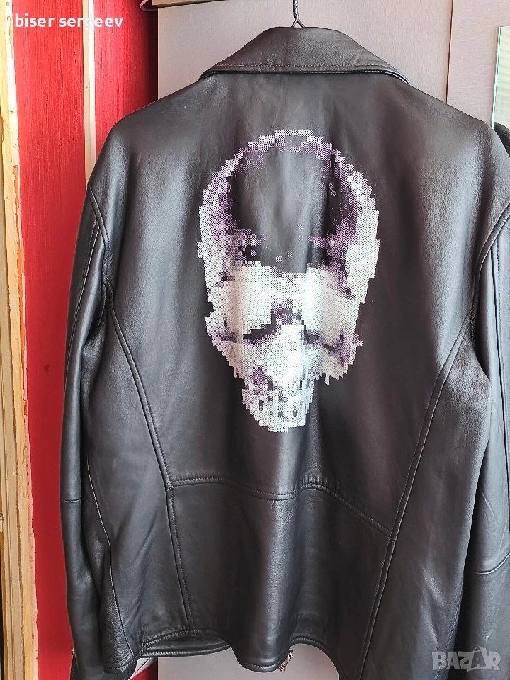 Якето е чисто ново,естествена мека кожа.Купено от Австрия,но за мое съжаление ми е малко.Обличал съм го само веднъж,но не е мойто ,не мога да го закопчая,малко ми е малко(а корема по голям)Гърбът го прави брутално ,уникално ,но уви.