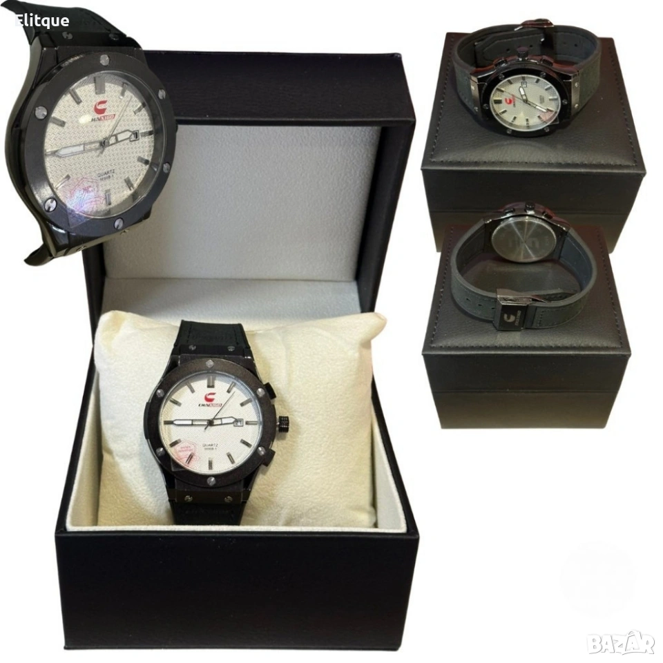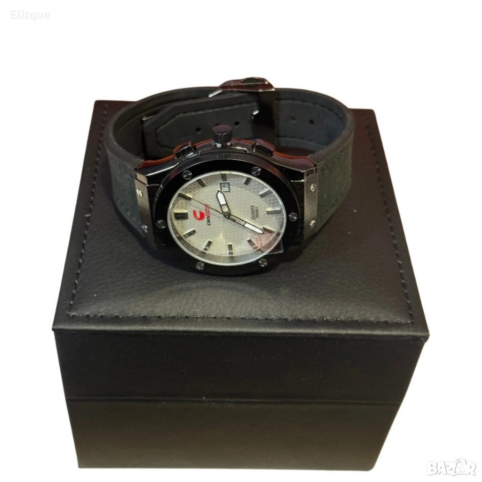 Тип механизъм: Кварцов; Материал на корпуса: Висококачествена неръждаема стомана; Материал на каишката: K о ж а; Водоустойчивост: Подходящ за ежедневна употреба (устойчив на пръски); Стъкло: Устойчиво на надраскване; Механичен; Опаковка: Луксозна подаръчна кутия; Гаранция: 12 месеца.