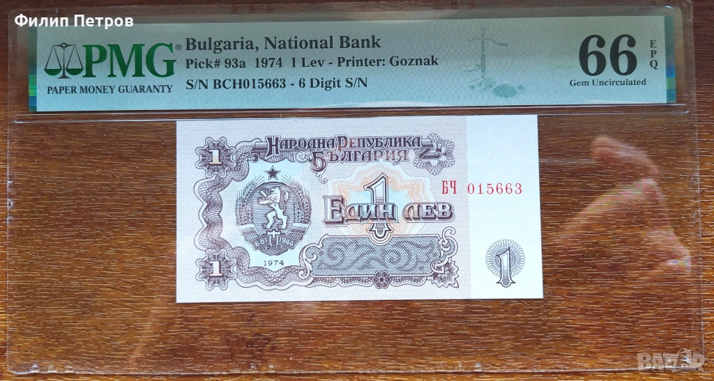 PMG 66 EPQ 1 лев 1974 с 6 цифри ( редкия вариант ) → Обява 53561709