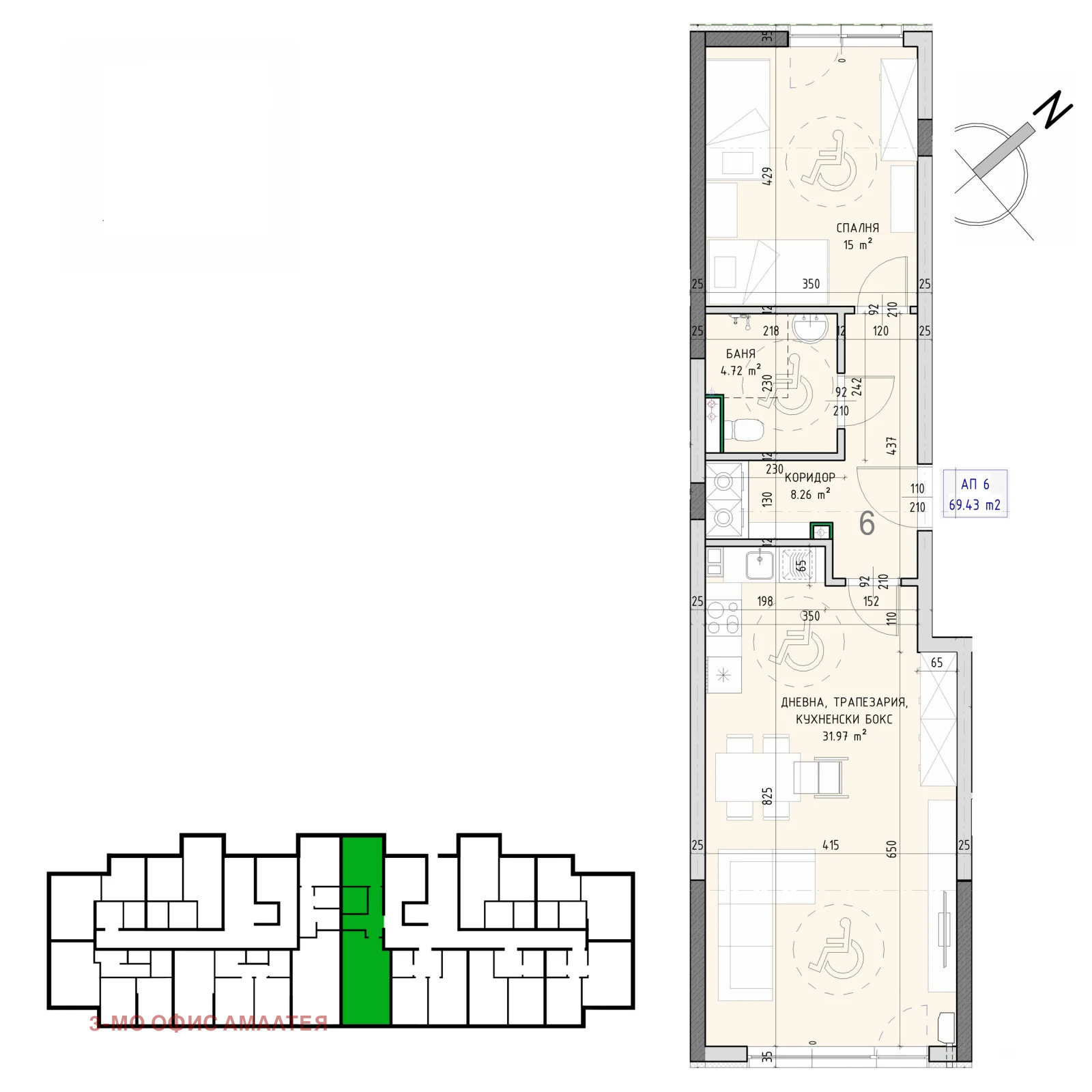 3mo Амалтея предлага за продажба двустаен тухлен апартамент на партерен етаж, в новострояща се луксозна жилищна сграда в ж.к. Малинова долина, в близост до бул. Околовръстен път.