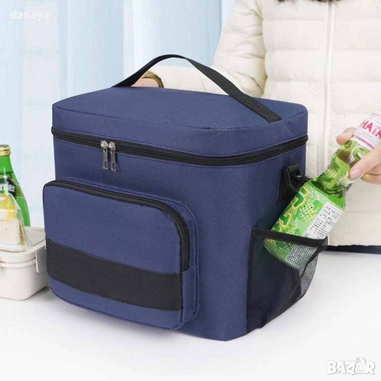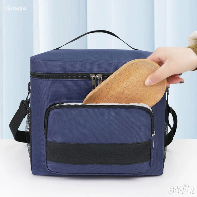 Чантата разполага с удобна дръжка за носене и регулируема презрамка, което я прави практичен избор за ежедневна употреба. Подходяща е за обяд в офиса, училище, пътувания, пикник и къмпинг.