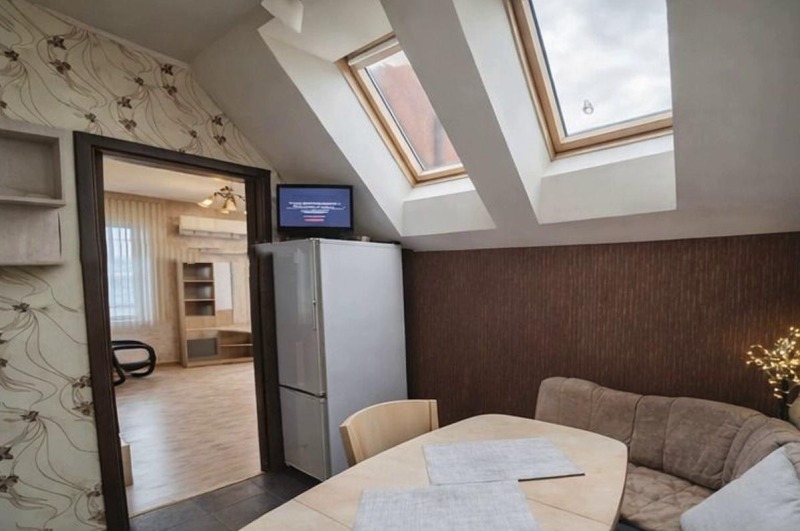 Разпределението включва хол, кухня с кухненски бокс, баня с тоалетна и спалня с тераса. Апартаментът е обзаведен и разполага с отопление на ТЕЦ. Месечният наем е 700 EUR.