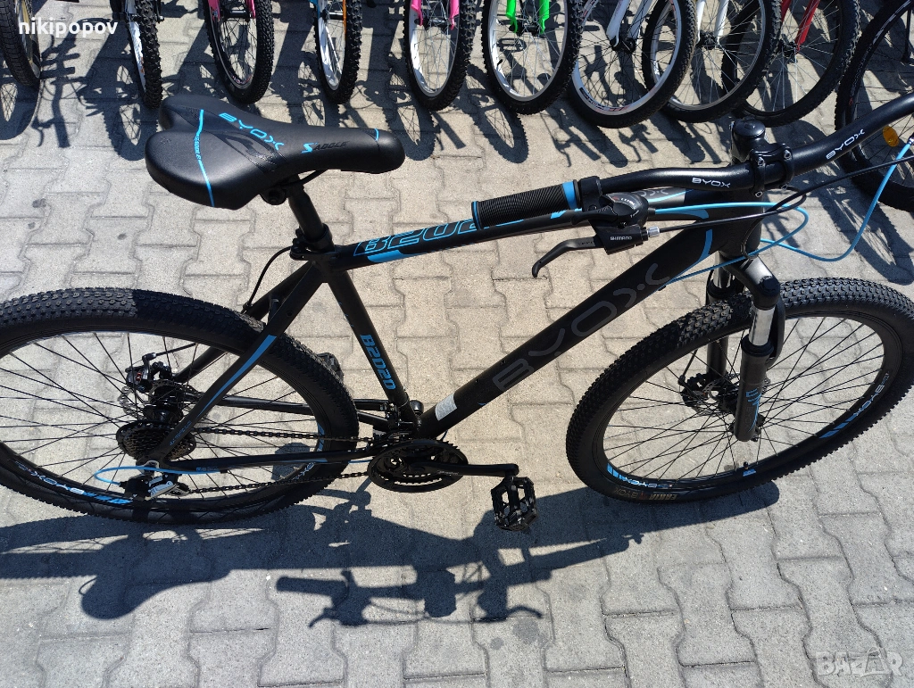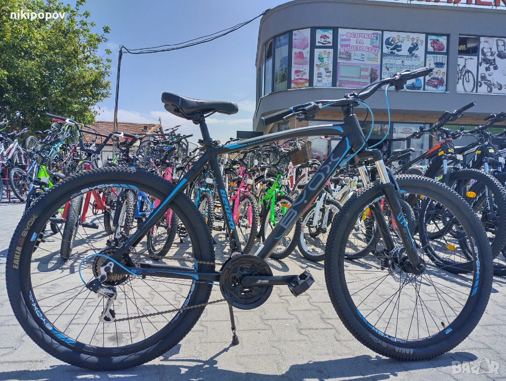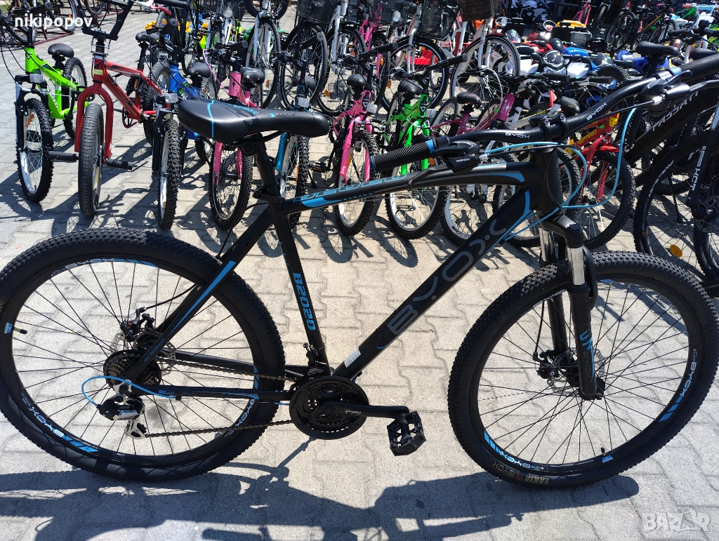 *Това е алуминиев спортен MTB велосипед със Shimano скорости, преден амортисьор и дискови спирачки от Byox Bikes. Този модел е отличен избор за лице над 14-годишна възраст и височина от 165 до 185см.