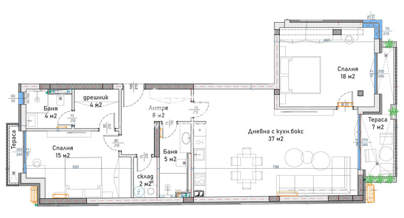 Оферта 68889 - Представяме ви малка елегантна жилищна сграда, съчетаваща уют и комфорт в една от най-предпочитаните части на кв. Кючук Париж в непосредствена близост до парк Белите брези . Локацията съчетава спокойна жилищна среда, зеленина и бърз достъп до централната част на Пловдив. Тристаен апартамент, състои се от 37кв.м. дневна оформена на кътове: кът за мека мебел, кът за хранене и кухненска част, две големи спални: родителска 15кв.м. със собствена баня и дрешник, детска 18кв.м., втора баня с тоалетна, килер/перално помещение, входно антре с място за вграден гардероб и две тераси. Сградата е пететажна, с модерна архитектура и ограничен брой жилища само по два апартамента на етаж. Общият брой на апартаментите е 9, което осигурява повече уединение и комфорт за живущите. Разпределенията са функционални, с правилни форми на помещенията, просторни дневни зони и големи френски прозорци, които осигуряват отлична осветеност през целия ден. Всеки апартамент разполага с удобна тераса. На партерно ниво са предвидени гаражи, гарантиращи сигурност и удобство. Районът предлага отлична инфраструктура в близост се намират училища, детски градини, магазини, спирки на градски транспорт и зелени площи. Подходящ както за семейно жилище, така и за дългосрочна инвестиция.