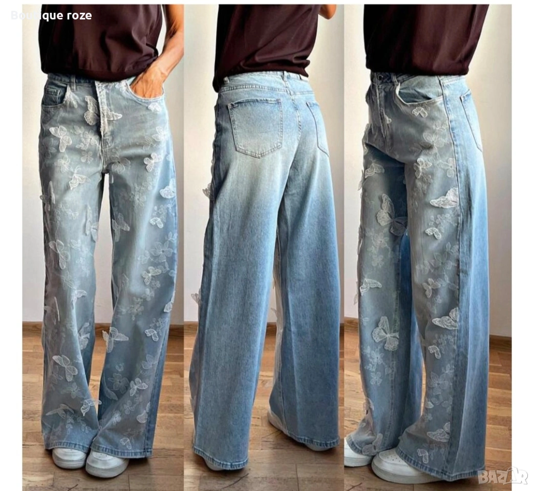 Дамски дънки с 3д пеперуди и дантела → Обява 53562160