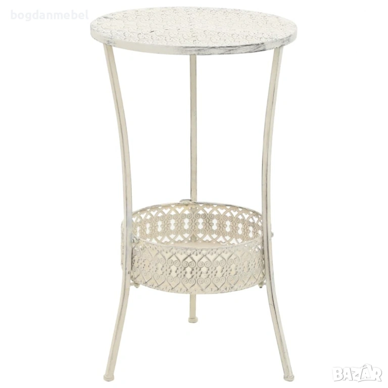 Тази метална бистро маса е украсена с изискани детайли, които ѝ придават античен вид и ще я превърнат в акцент на всяка стая. Тя е проектирана с долна кошница за допълнително пространство за съхранение. Артикулът се сглобява лесно.