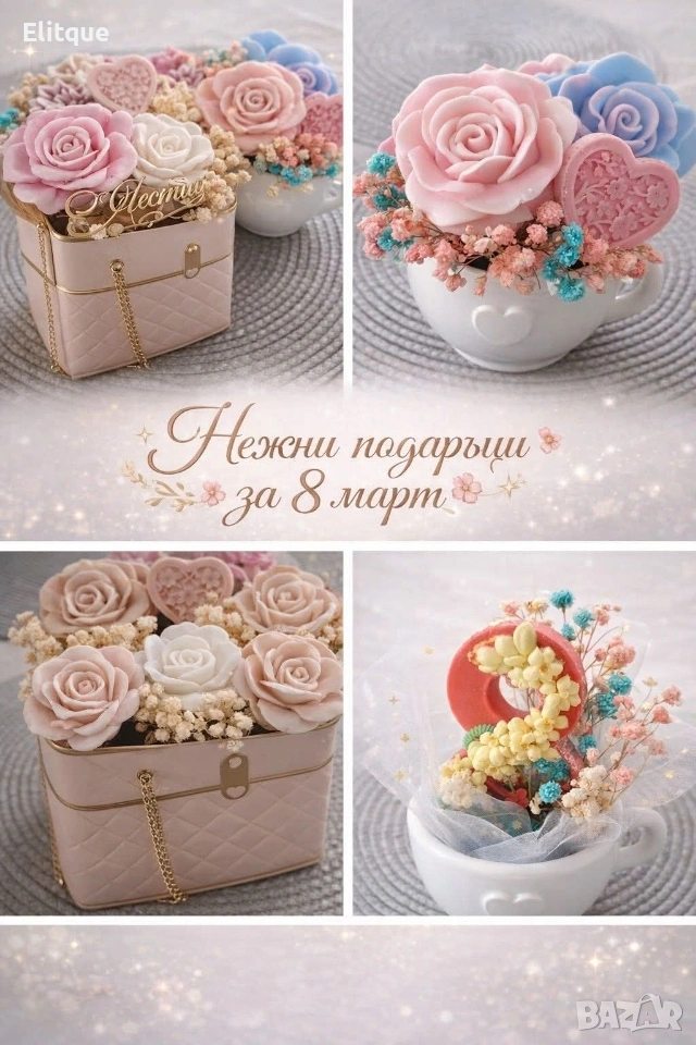 🌸 Нежни подаръци за 8 март 🌸 Ръчно изработени сапунени рози, комбинирани с фина гипсофила и стилна аранжировка. Елегантен и дълготраен подарък, който носи усмивка и нежност. 💐 Не увяхват 💐 Подходящи за декорация 💐 Идеални за майка, учителка или любима жена