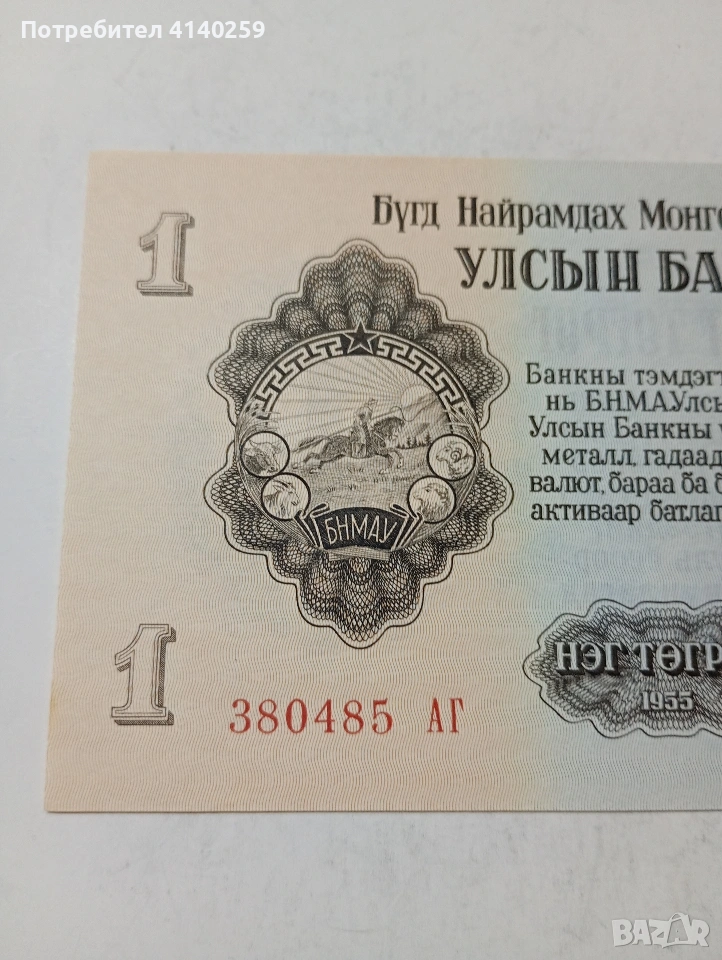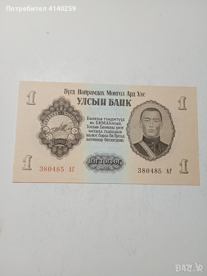 МОНГОЛИЯ БАНКНОТА 1 ТУГРИК 1955 Г РЯДКА СЪСТОЯНИЕ НОВО ПОЛУЧАВАТЕ СНИМАНАТА БАНКНОТА РАЗГЛЕДАЙТЕ ДРУГИТЕ МИ ОБЯВИ ДА КОМБИНИРАТЕ ДОСТАВКА ЕКОНТ ЗА ВАРНА ЛИЧНО