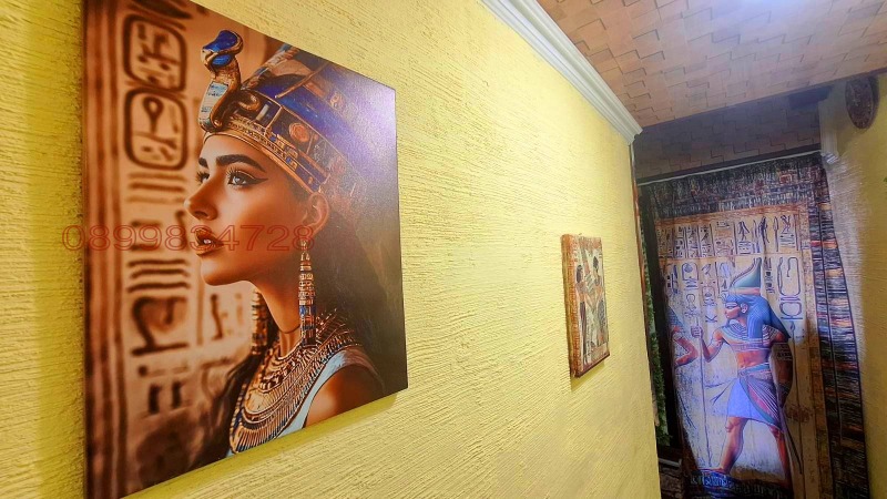 Жилището е артистично аранжирано в общите площи в стила на египетската култура!