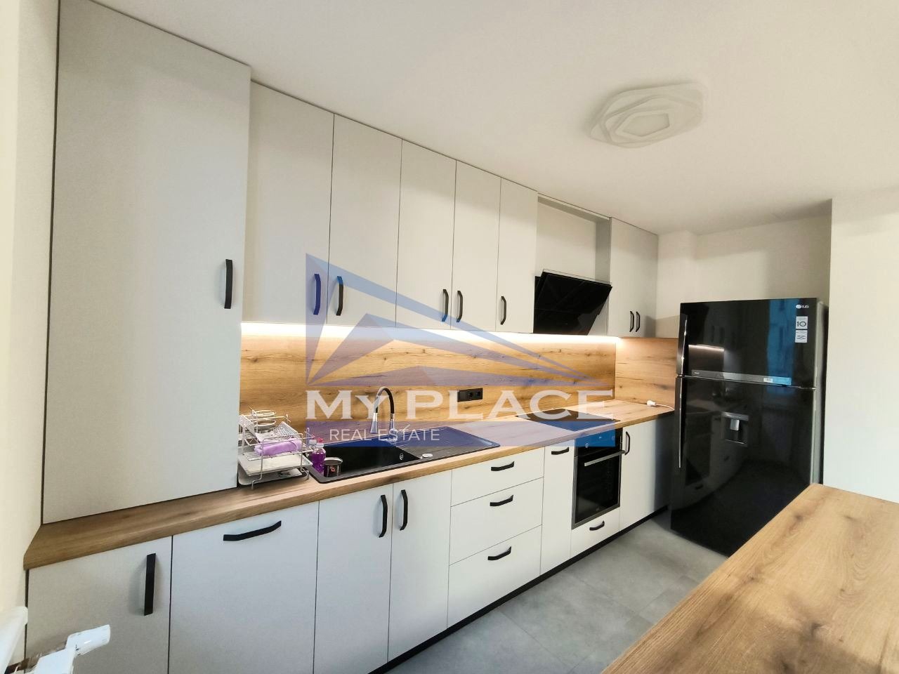 Агенция My Place продава тристаен ТУХЛЕН апартамент с чиста площ 96,46 кв.м - кв. Център. Състои се от: Г-образен коридор, дневен тракт с кухня и трапезария, ДВЕ спални, остъклена тераса, перално помещение, баня и тоалетна в отделни помещения.