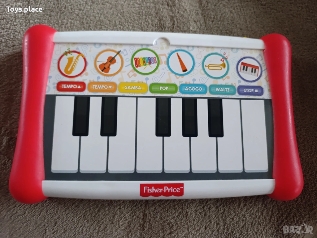 Всички малчугани обичат да играят с различни музикални играчки, именно затова Fisher Price представят едно чудесно пиано, с което у дома ви очакват безброй весели и шумни концерти. Пианото разполага с 8 клавиша, може да възпроизвежда различни предварително зададени мелодии ( 12 броя), в 8 стила, както и детето само да свири чрез клавишите. Пианото е изработено от висококачествена пластмаса в ярки цветове за да привлича детското внимание.