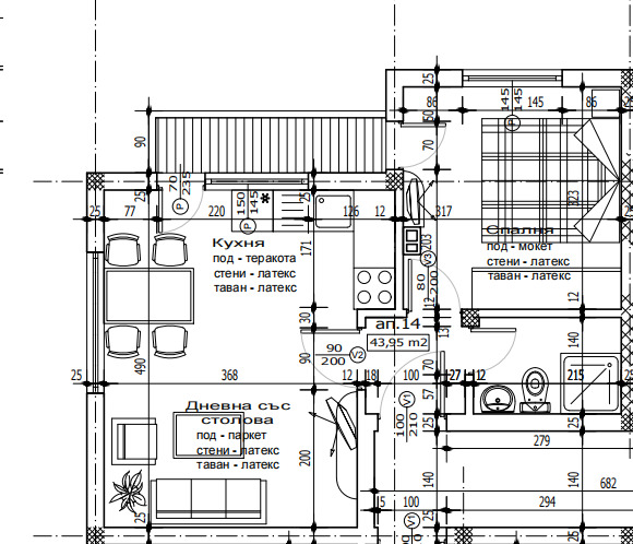 просторна дневна с кухненски тракт 18 кв.м, уютна спалня 11 кв.м, тераса 5 кв.м с приятна гледка, баня с тоалетна