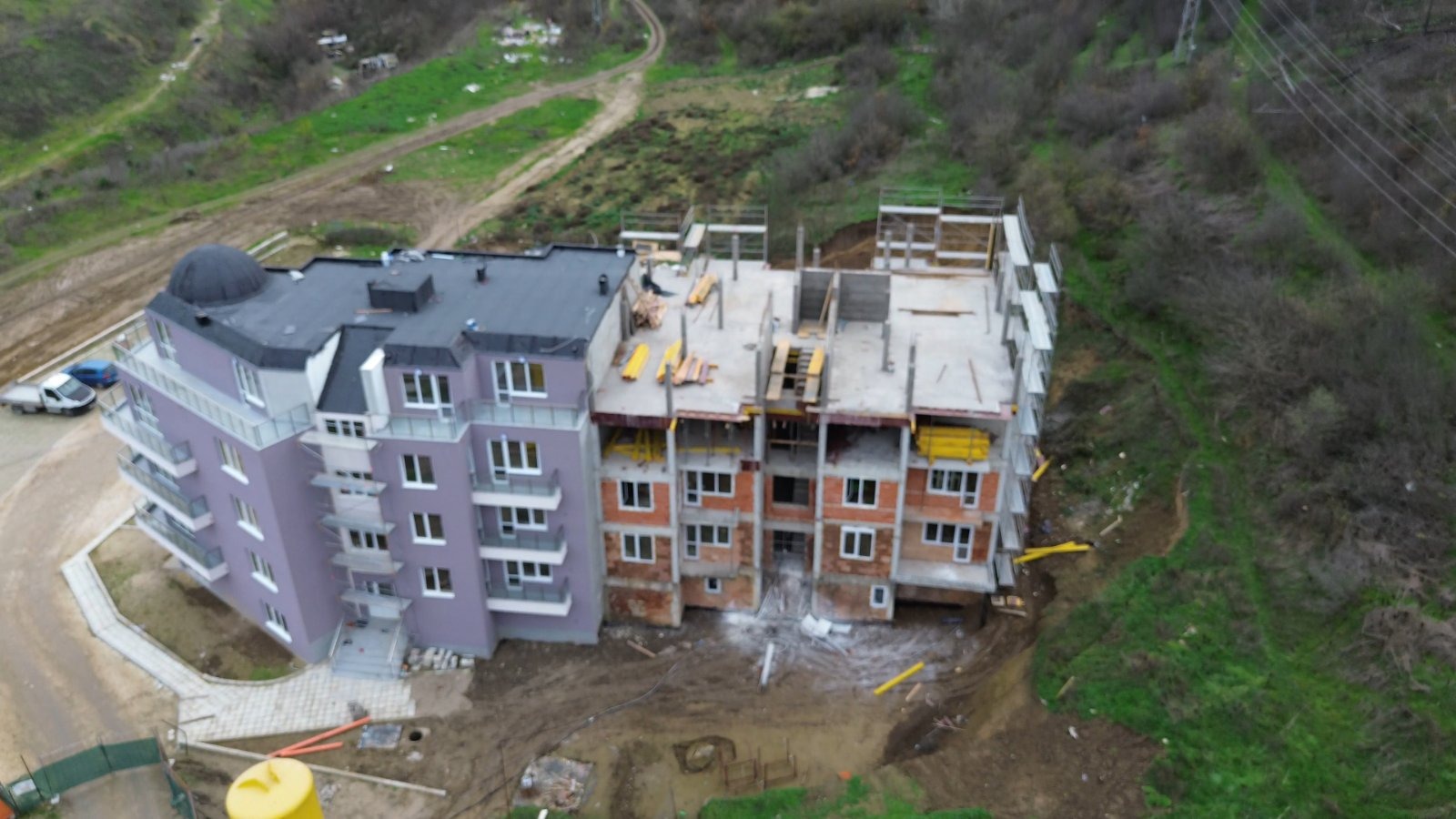 Имотът се намира на среден етаж в малка бутикова сграда в процес на строителство, като се очаква в близко време достигане до етап Акт 14. Районът е тих и спокоен, с много зелени площи и приятна жилищна среда, съчетаваща спокойствие и удобен достъп до основните точки на града.