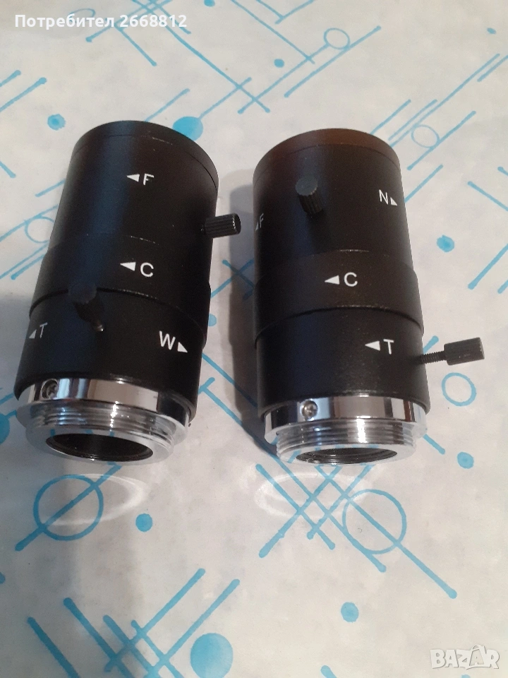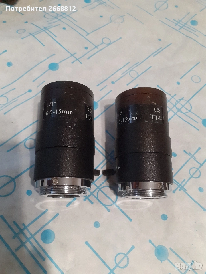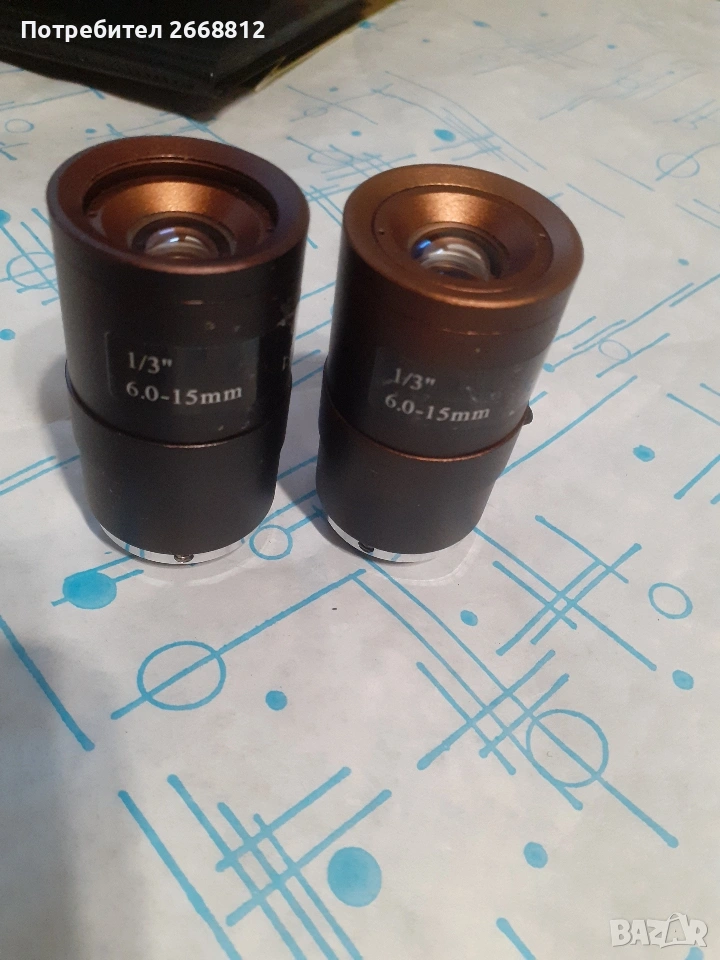 два броя обективи тип сензор 1/ 3 инча. Фокус разстояние 6.0 - 15 мм. позволява ръчно регулиране цена 25 евро брой