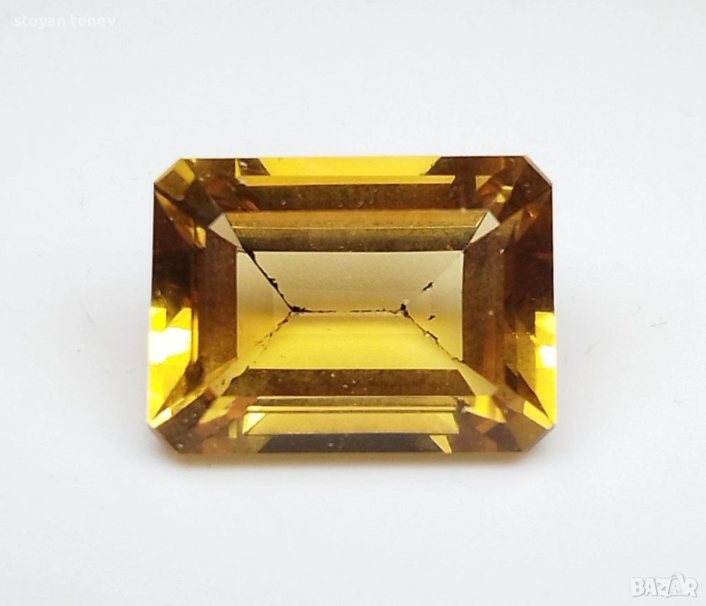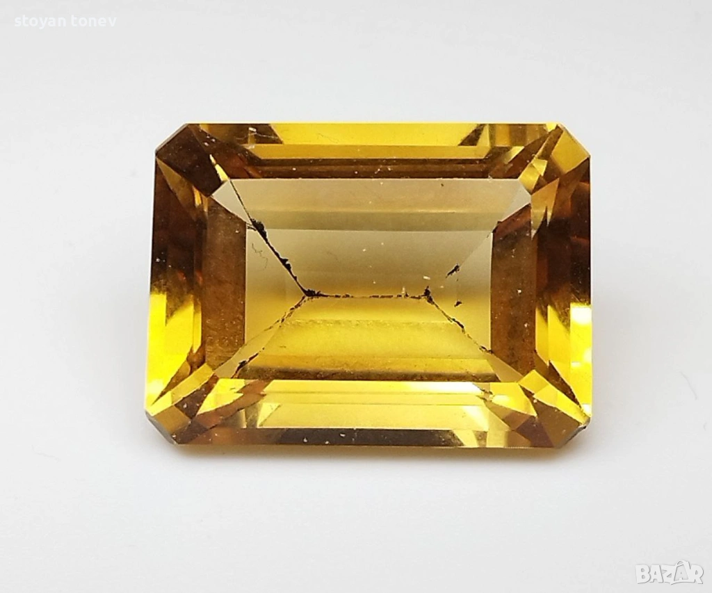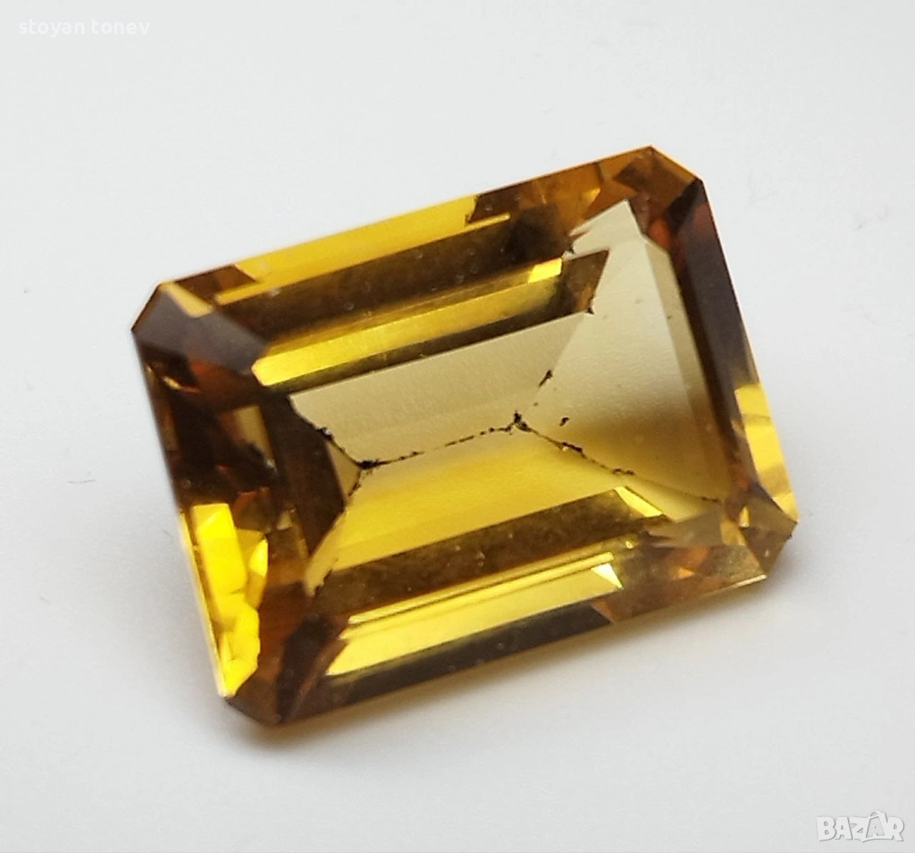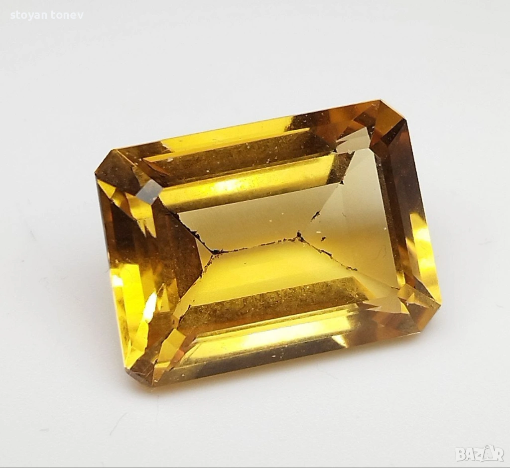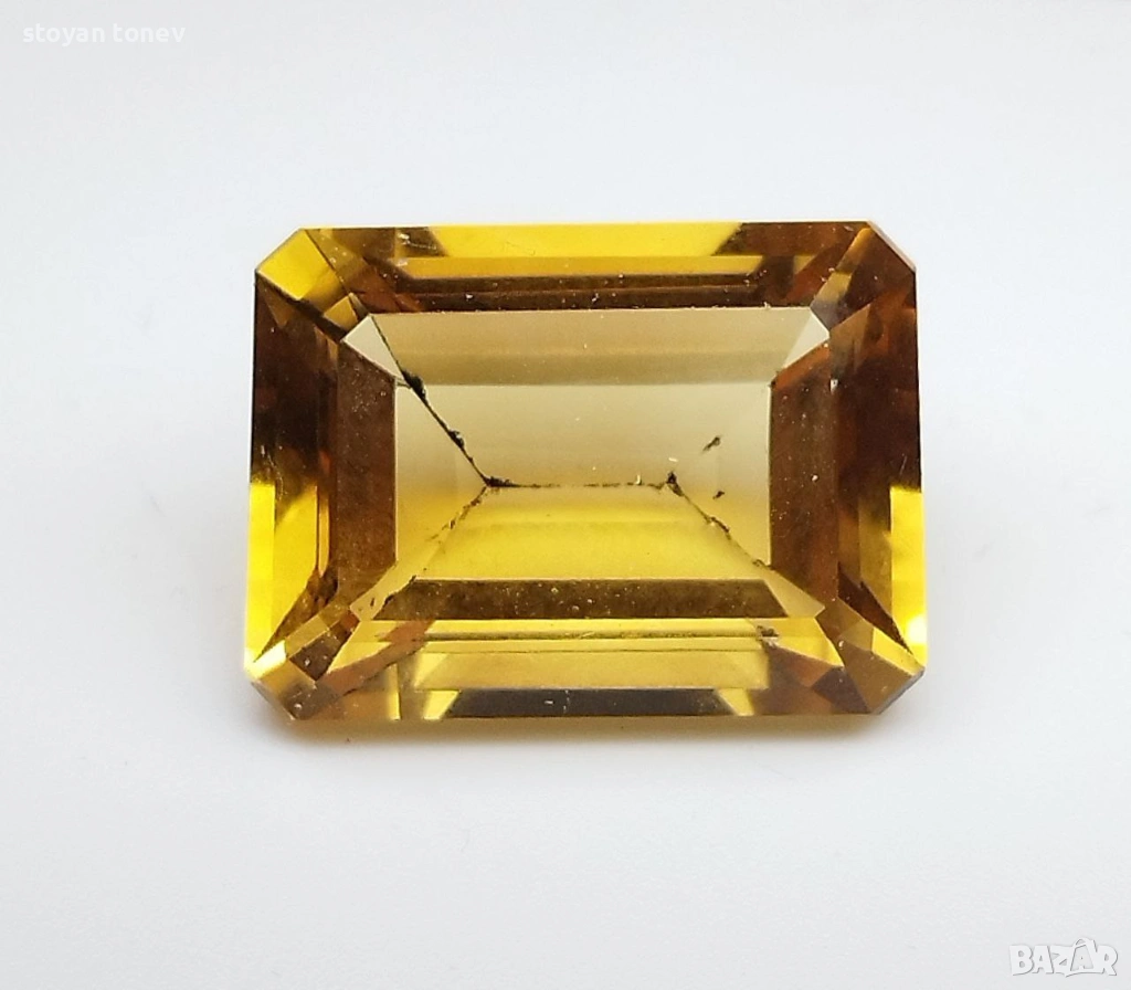 Рядък голям 15.39кт естествен жълт цитрин – VVS чистота, емералд кът, Африка! Нов!