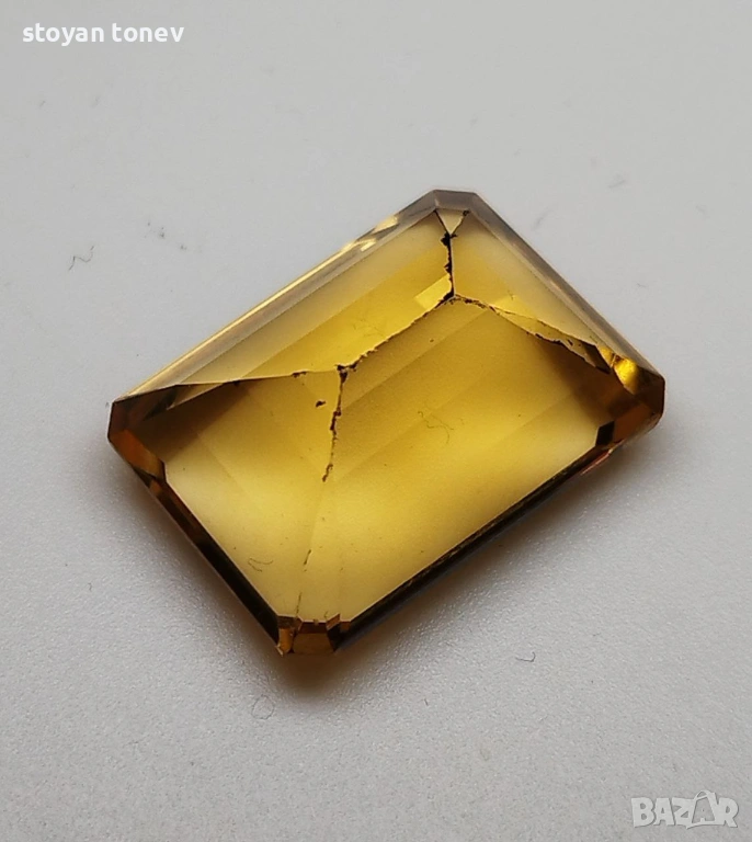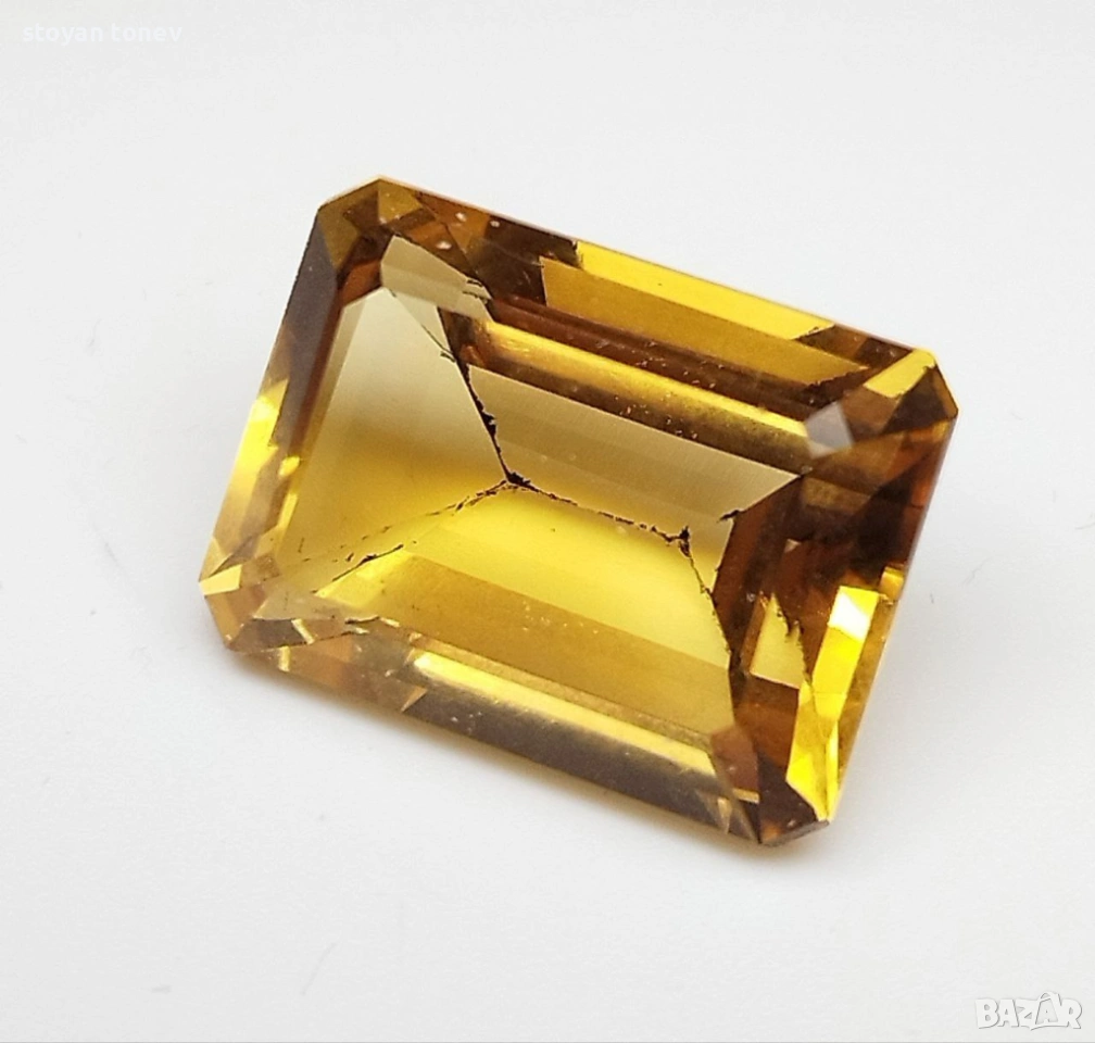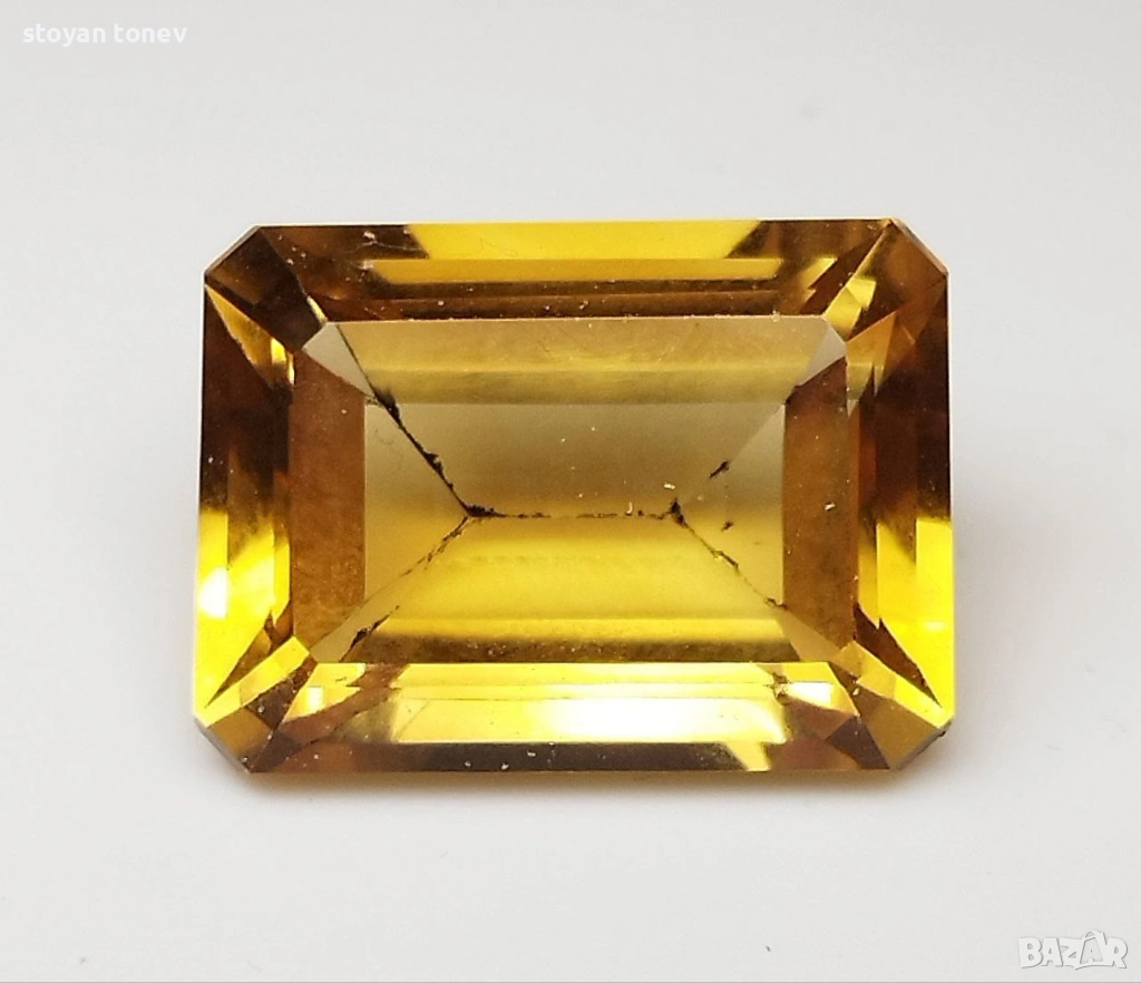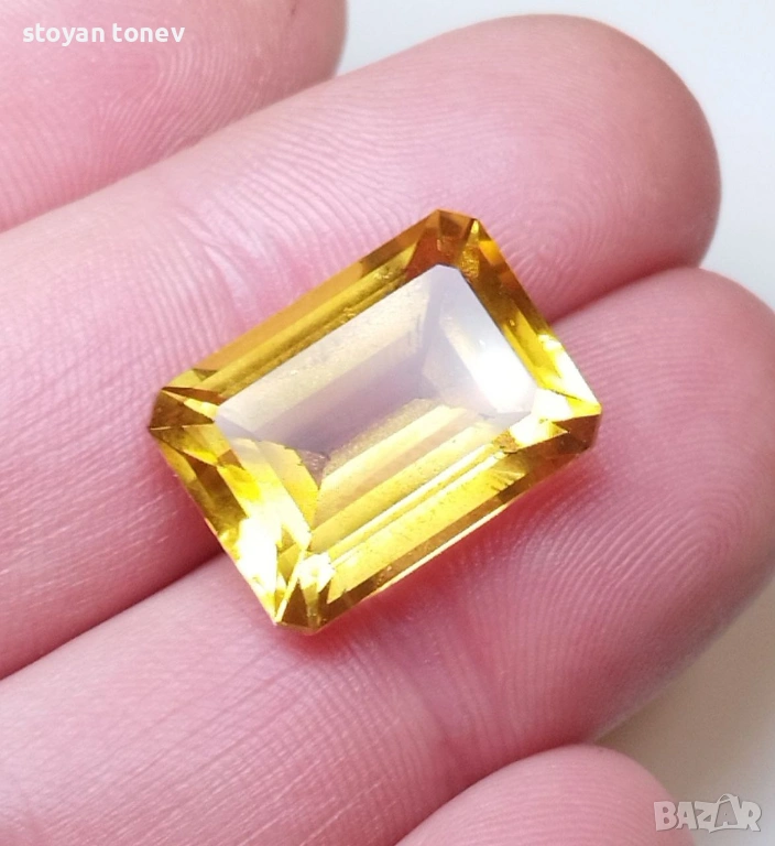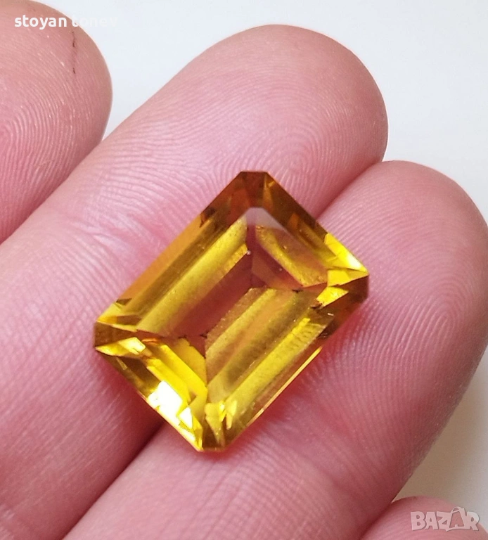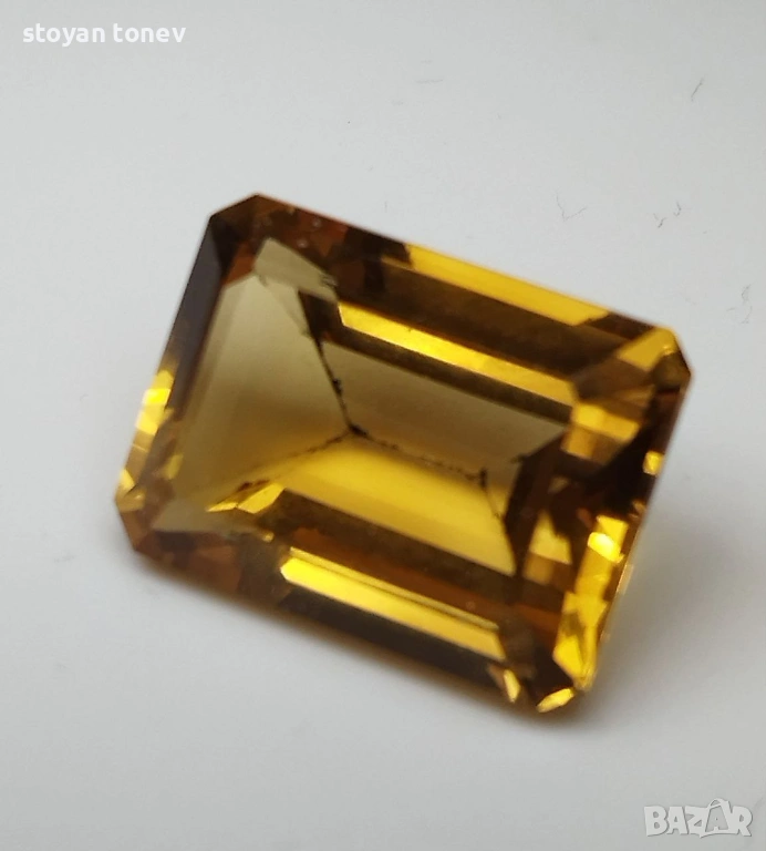 Рядък голям 15.39кт естествен жълт цитрин – VVS чистота, емералд кът, Африка! Нов!