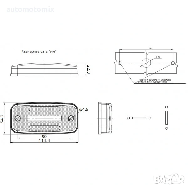 Универсалните габарити са подходящи за всякакви камиони, бусове, каравани, ремаркета и полуремаркета, селскостопански машини, платформи за лодки и мотори, строителна техника и др.