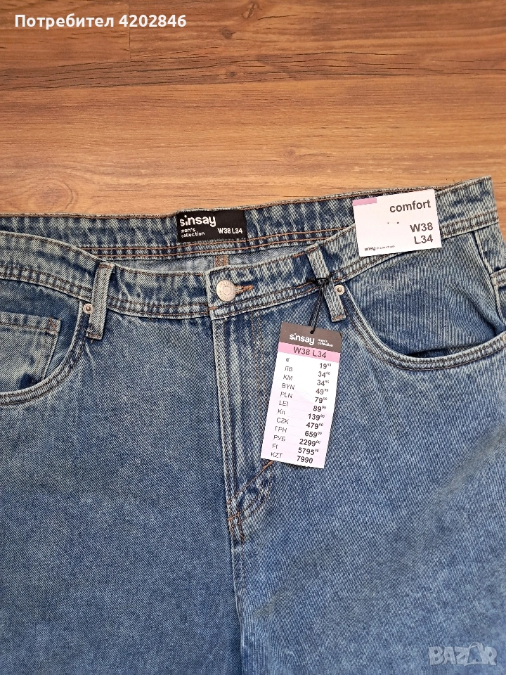 👖Мъжки дънки Sinsay, модел Comfort. Нови, с етикет. Размер W38/L34. Талия 51 см. едностранно. 100% памук. Цена 14€.
