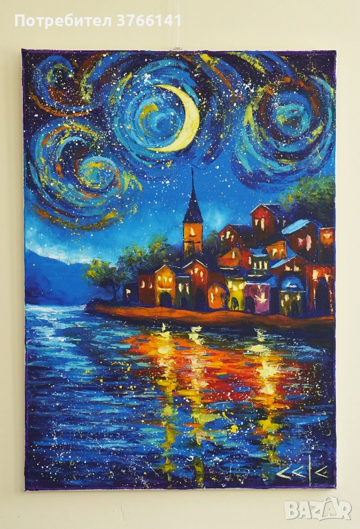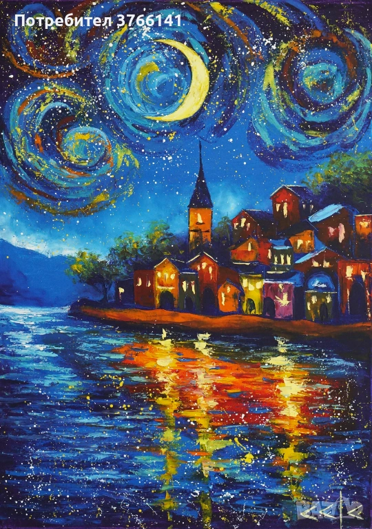 "Вълшебна нощ" Картина 70х50см, Маслена живопис с шпакла → Обява 53563042