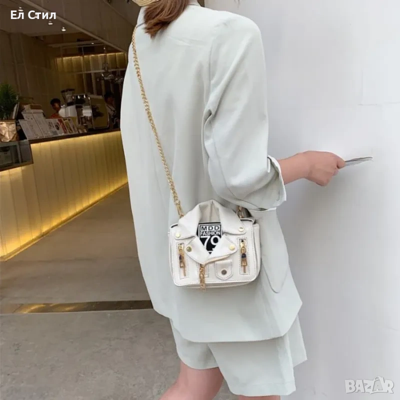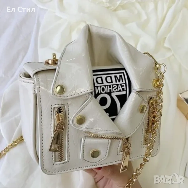 Лачена чантичка White Jacket с дълга дръжка - верига