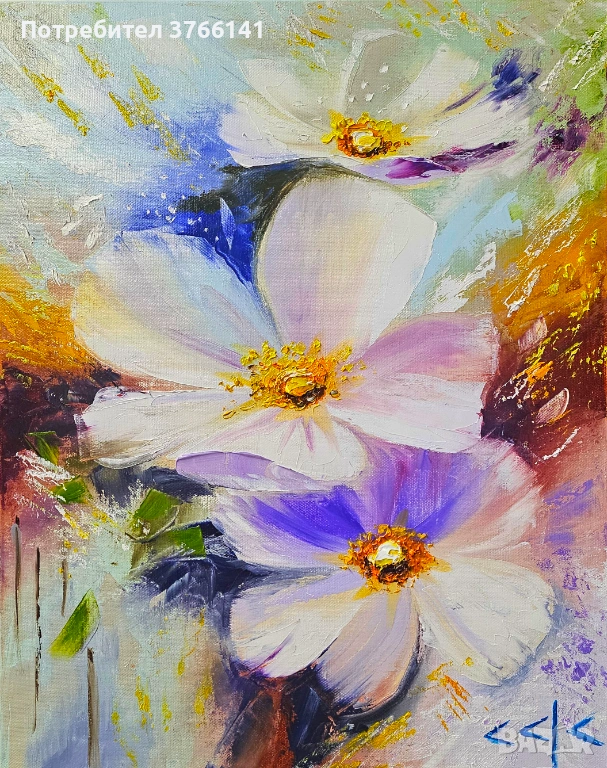 "Абстрактни цветя" Картина 50х40 см, Маслена живопис с шпакла → Обява 53563106