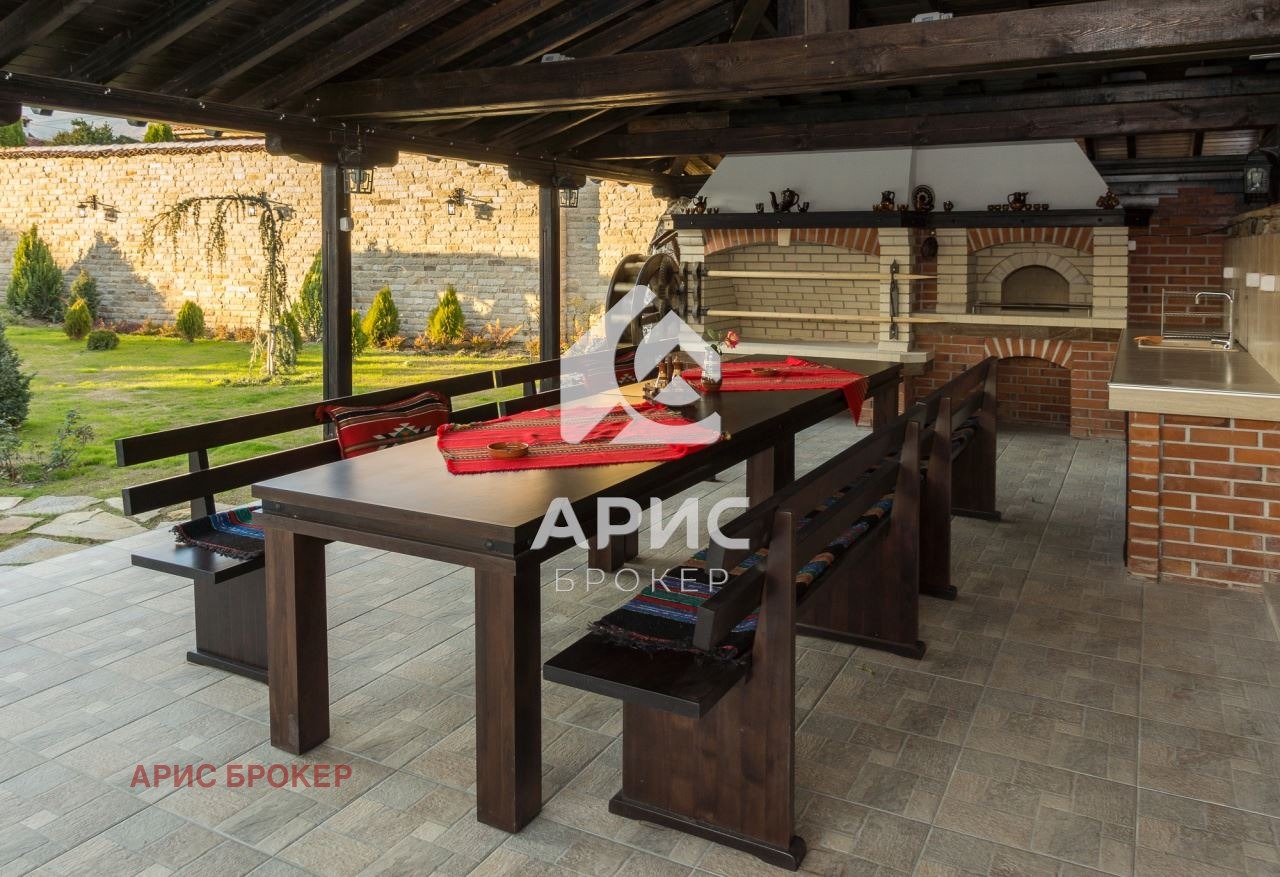 Просторно барбекю с традиционни съоръжения пещ и чеверме