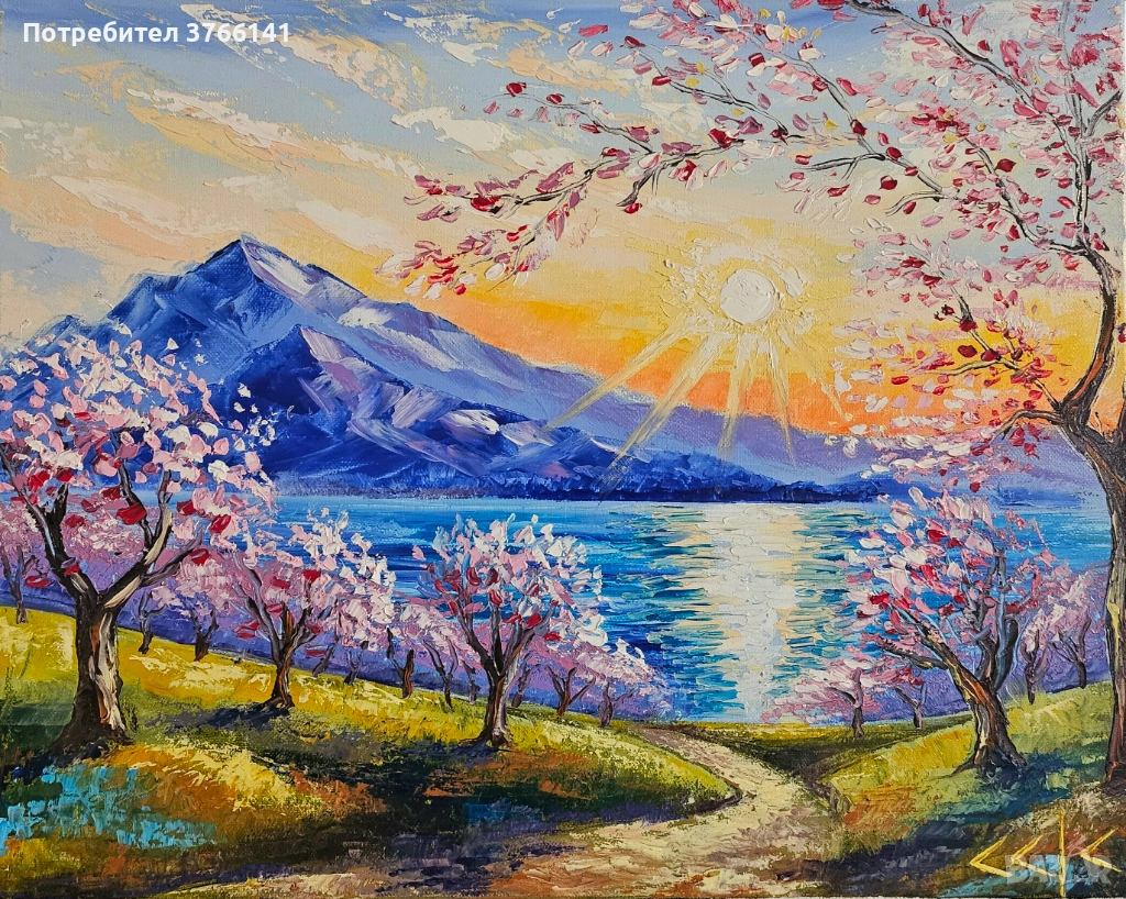 "Слънчева импресия" Картина 40х50 см, Маслена живопис с шпакла → Обява 53563137