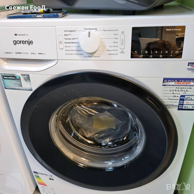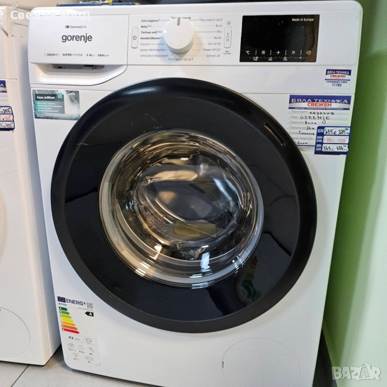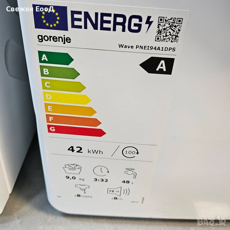 Wave PNEI 94 A1DPS е пералня от Gorenje. Тази пералня се отличава с отлична енергийна ефективност, постигайки рейтинг А (по скала от A до G). С капацитет от 9 кг, тази пералня с предно зареждане е особено подходяща за домакинства с пет или повече души. Вграденият инверторен мотор работи много тихо и е практически без износване. Освен това, пералнята Wave PNEI 94 A1DPS предлага специална функция: функция за презареждане. Автоматичното регулиране на натоварването е интелигентно и практично. Сензорите отчитат количеството пране в барабана и автоматично регулират нивото на водата съответно. Функцията за отложен старт ви позволява индивидуално да зададете кога Wave PNEI 94 A1DPS трябва да започне цикъла си на пране. Забравени дрехи могат да бъдат добавени по време на програмата с помощта на удобната функция за презареждане. Оставащото време на програмата се показва на индикатора за оставащо време, така че винаги знаете колко време е необходимо на пералнята, за да завърши цикъла си. Собствениците на пералнята Wave PNEI 94 A1DPS са перфектно защитени от повреди от вода благодарение на системата за защита от вода "Aqua Stop safety hose". Включена е и детска ключалка за безопасността .