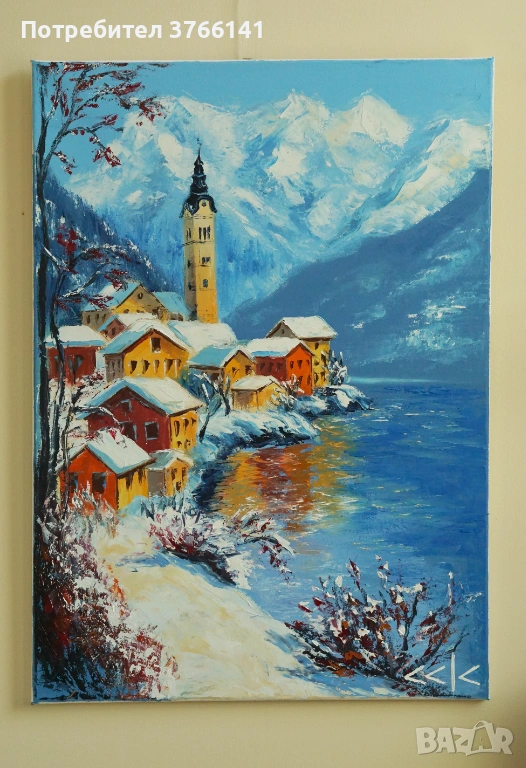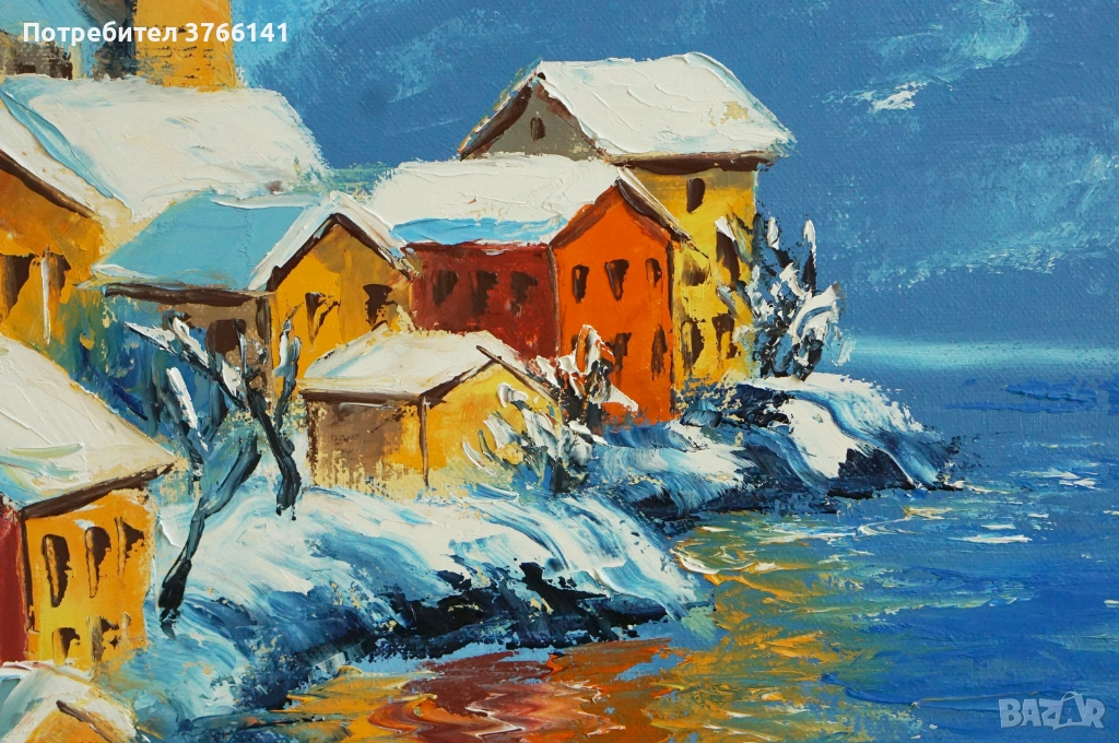 "Слънчева зима" Картина 70х50см, Маслена живопис с шпакла → Обява 53563220